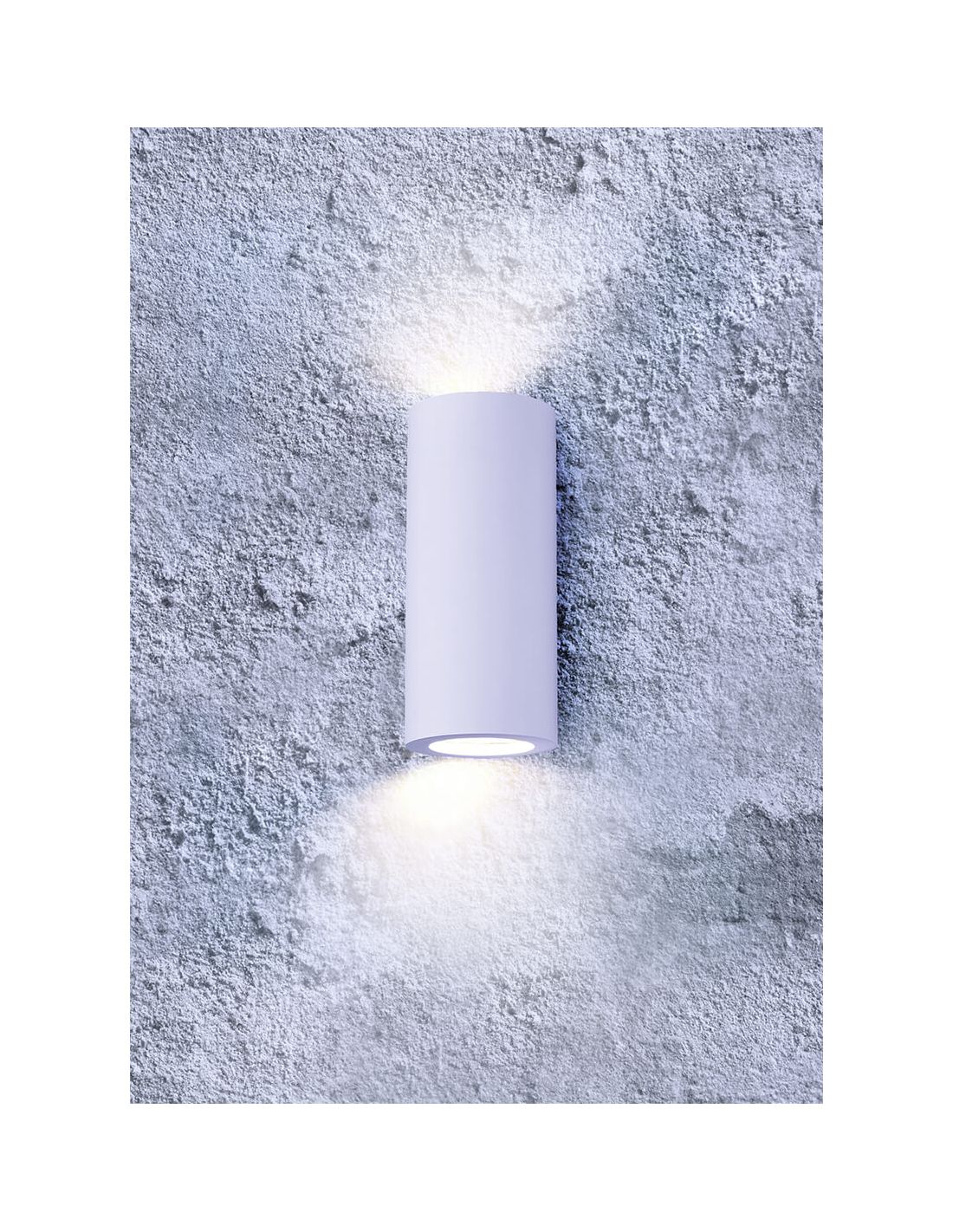 Applique tubulaire au design moderne de la série Zazou en blanc. Cette applique est composée d'un corps en plâtre blanc. Cette applique intérieure abrite une douille en haut et une autre en bas pour installer 2 ampoules LED GU10.