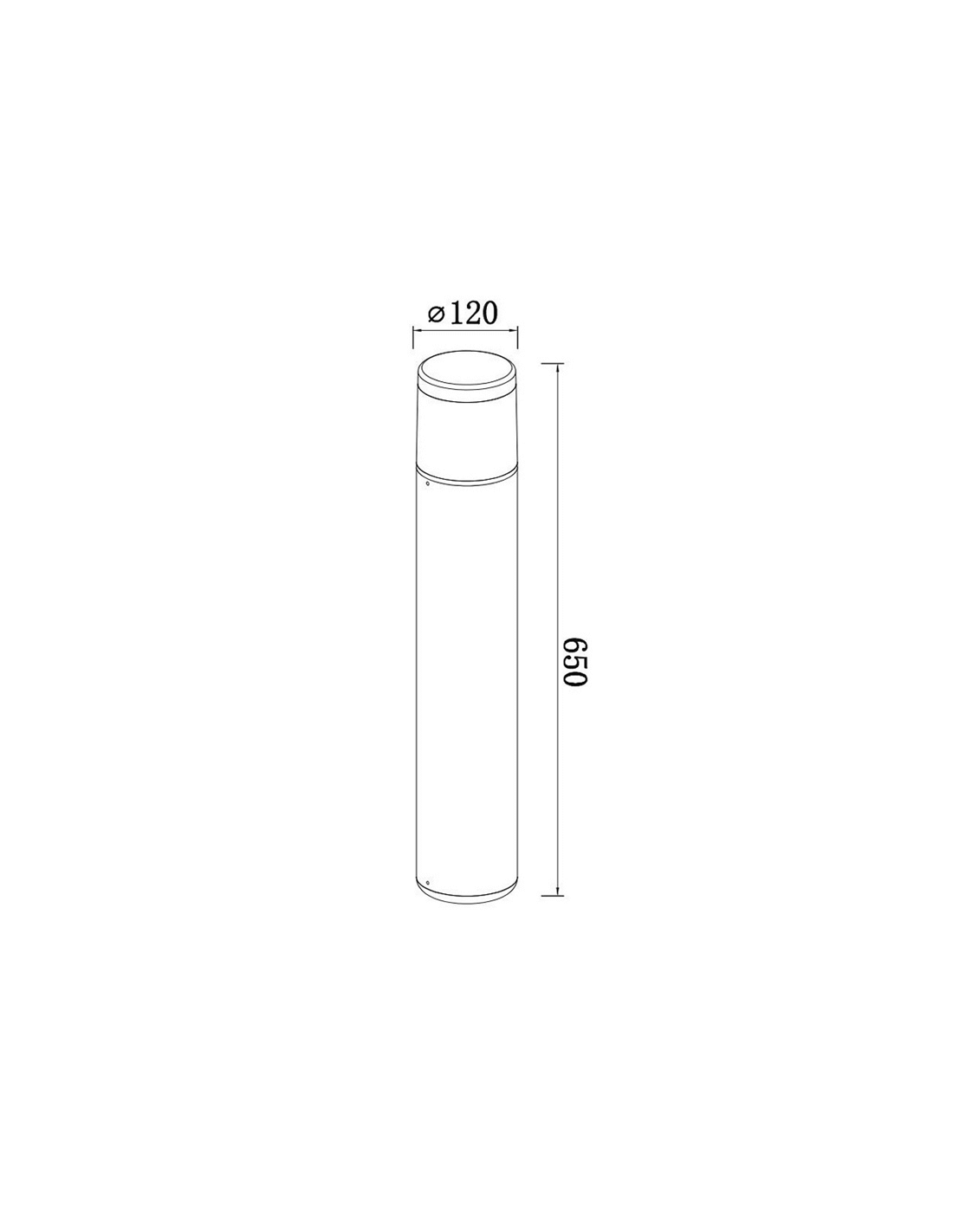 La balise Chicago de forme cylindrique a les dimensions suivantes : 650 mm de hauteur et 120 mm de diamètre.