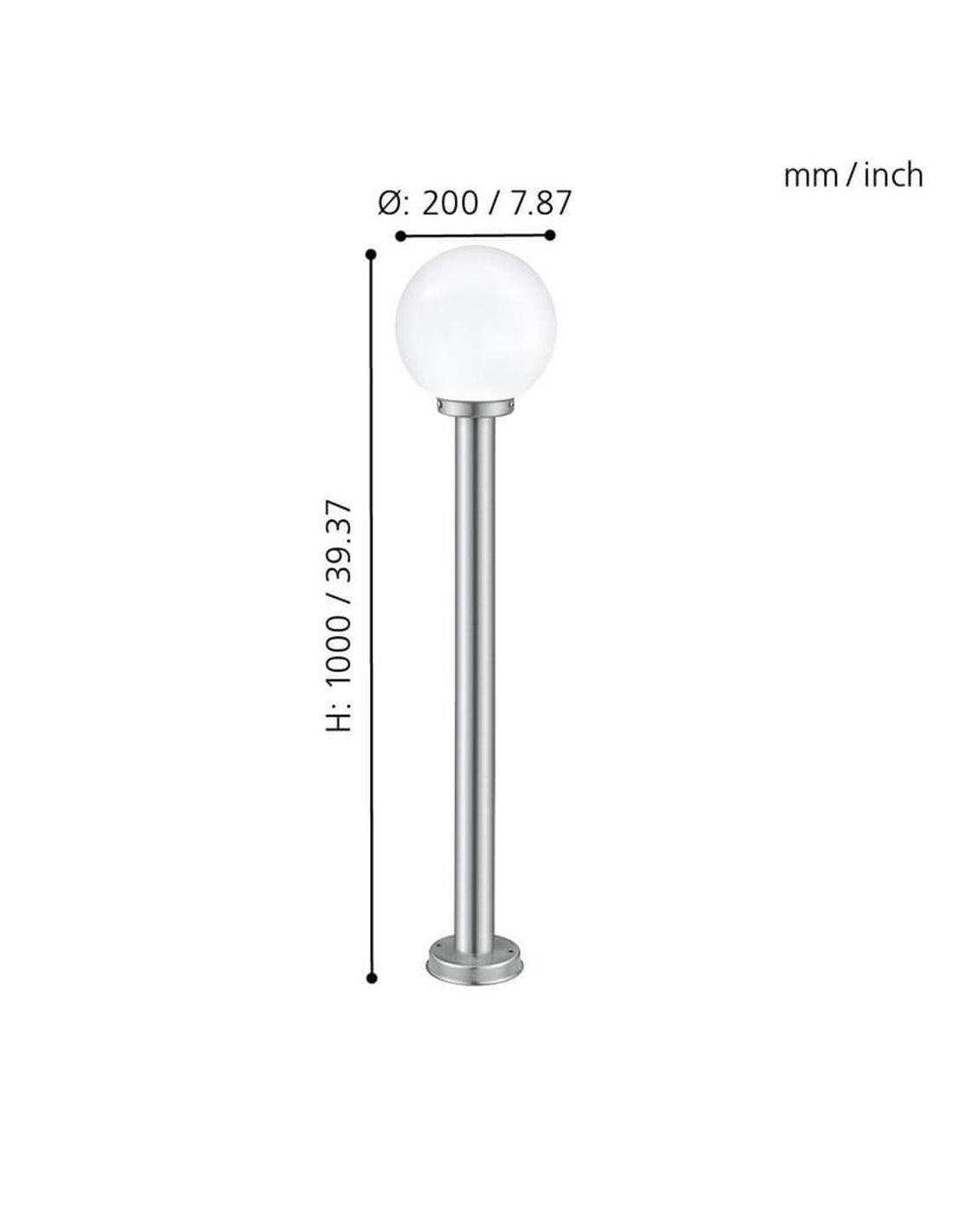 Balise d'extérieur NISIA, structure inox, hauteur 1m, abat-jour rond Ø20cm, E27, IP44 - Eglo Iluminación