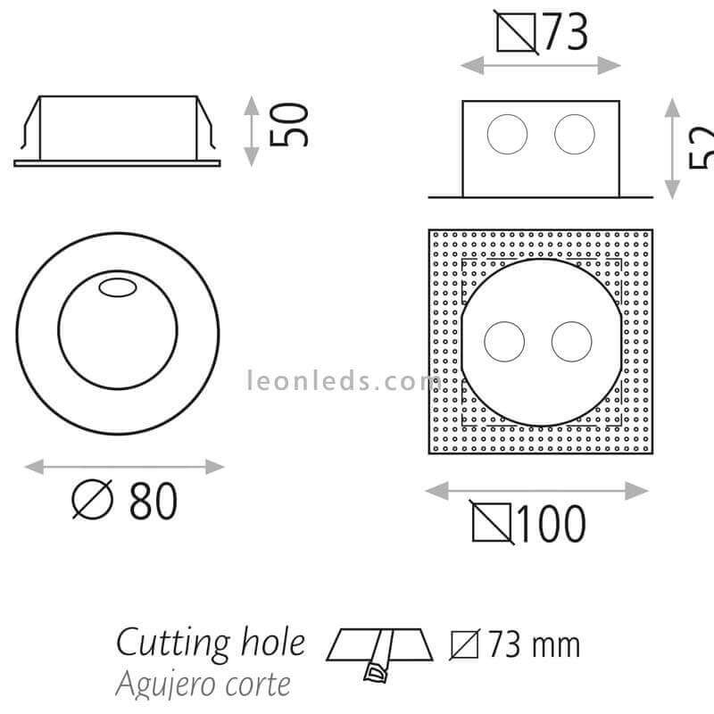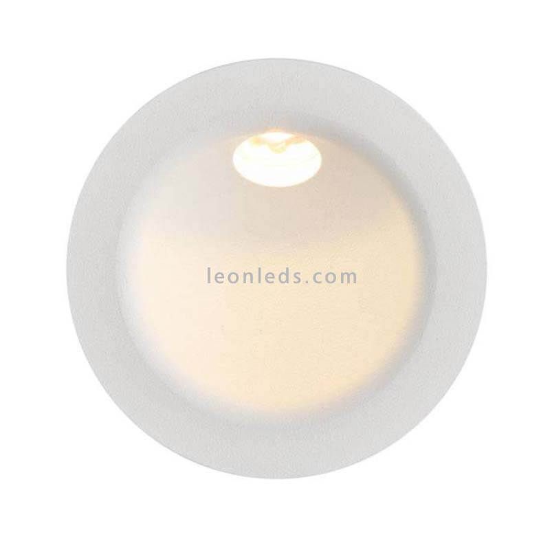 Gyrophare LED encastré modèle Regal pour intérieur ou extérieur avec une puissance de 3W, une tonalité lumineuse chaude de 3000K, une puissance de 245Lm, un IRC supérieur à 80 et un degré de protection contre l'eau et la poussière de IP54. Le Beacon a un diamètre de 8Cm, un diamètre de la partie arrière de 7.3Cm et une largeur de 5Cm, (dimensions du Beacon et de la Boite à encastrer voir en photo).