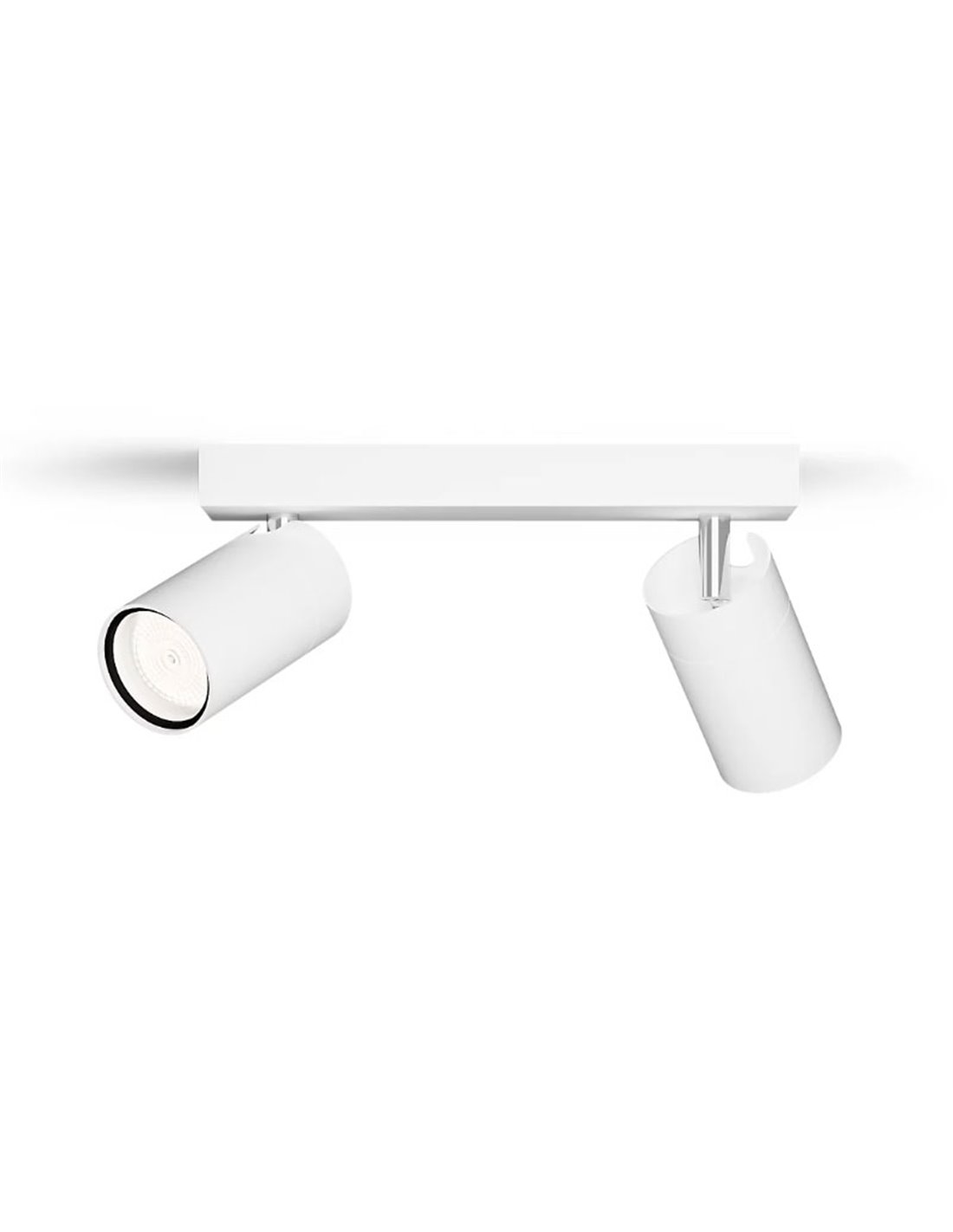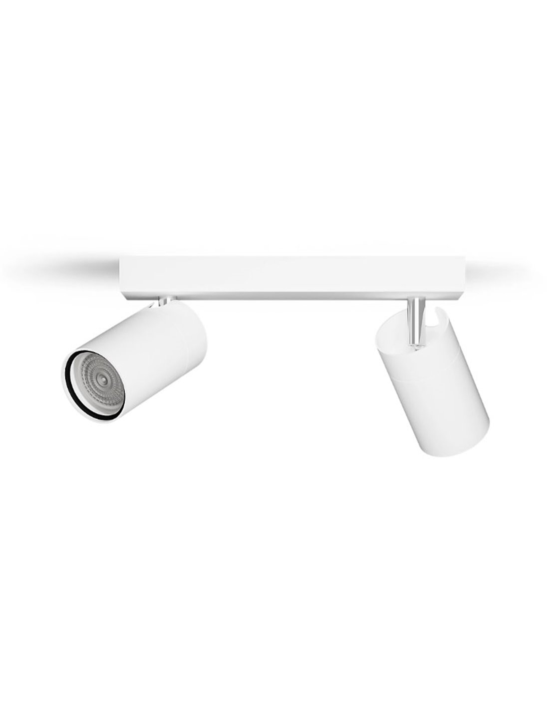 Bande lumineuse 2 spots IDRIS pour salle de bain - Finition blanche, idéale pour un éclairage élégant et fonctionnel dans les espaces humides. Compatible avec 2 ampoules GU10 (non fournies) et facile à installer grâce au système ClickFix . Parfait pour un montage au plafond ou au mur.
