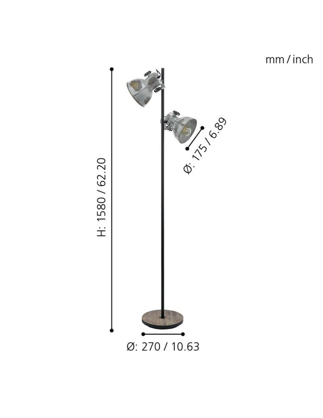 Le lampadaire BARNSTAPLE par EGLO est une pièce idéale pour ceux qui recherchent un éclairage unique avec une touche industrielle et rustique . Sa base ronde en métal présente un détail décoratif en bois marron et une bande en métal noir tout autour, lui conférant un style robuste et authentique. Les 2 têtes mobiles en zinc galvanisé utilisées ajoutent une touche de distinction et de polyvalence à son design.