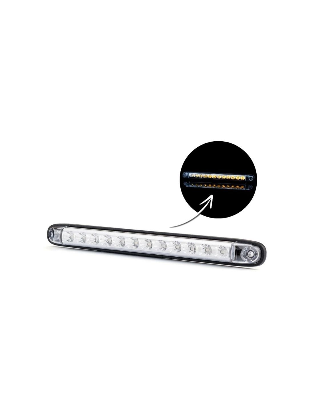 Barre LED arrière LKD 2249 avec fonction clignotant séquentiel , 12 LED puissantes , boîtier étanche IP68 , alimentation universelle 12/24 V et câble de raccordement de 1 mètre . Montage horizontal ou vertical, de chaque côté du véhicule.
