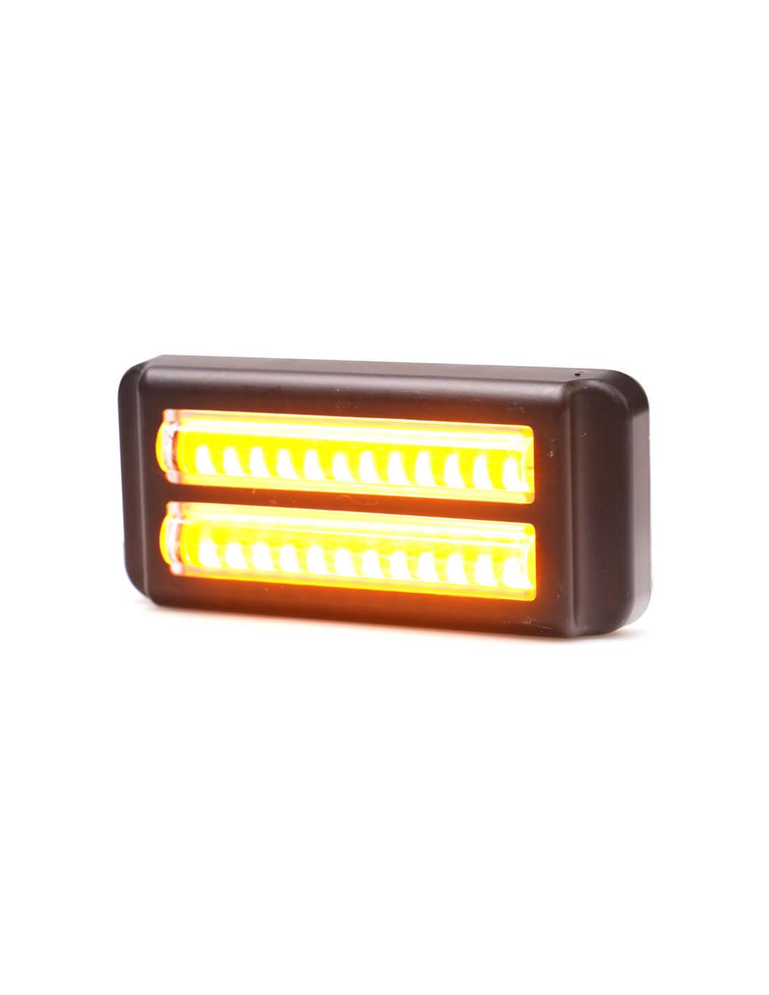 Barre LED XA1 mini-stroboscope ambre double flash , 12/24 V, homologuée ECE, IP68/IP6K et synchronisable en mode MAÎTRE/ESCLAVE. Idéale pour les véhicules d'urgence, les chantiers et les engins. Cinq programmes d'éclairage, dont un câble MAÎTRE pour un fonctionnement uniforme de tous les éclairages.