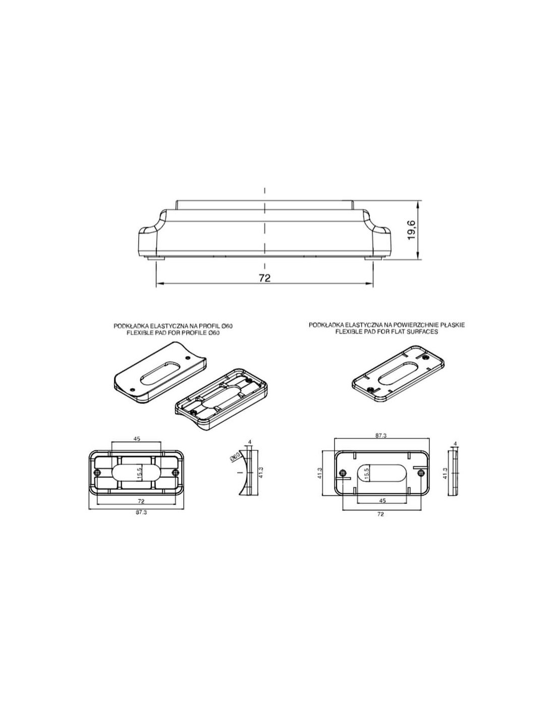 Comprend une base en caoutchouc pour un montage à plat ou sur barre.