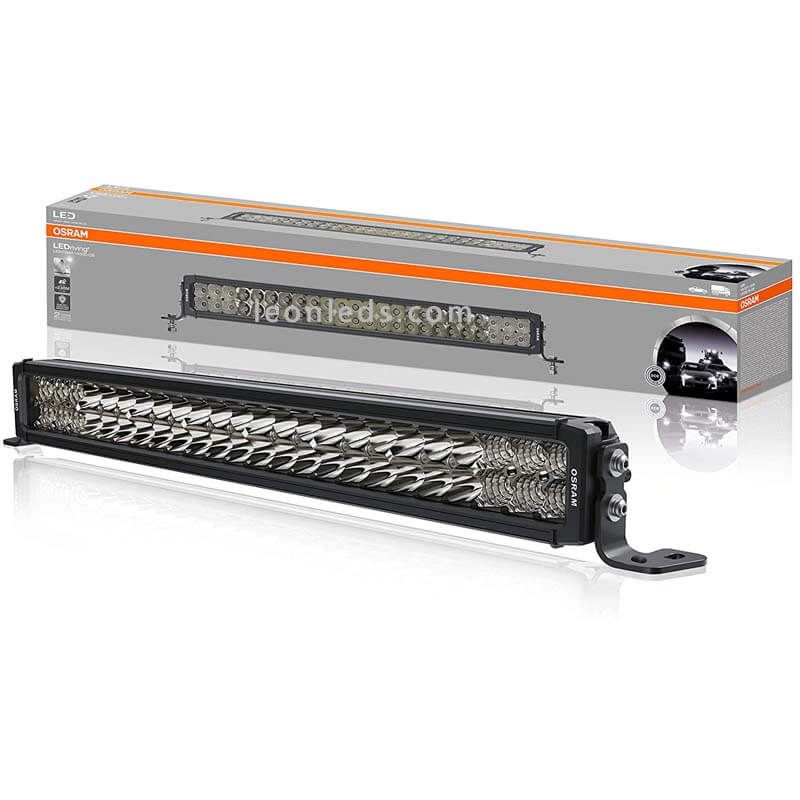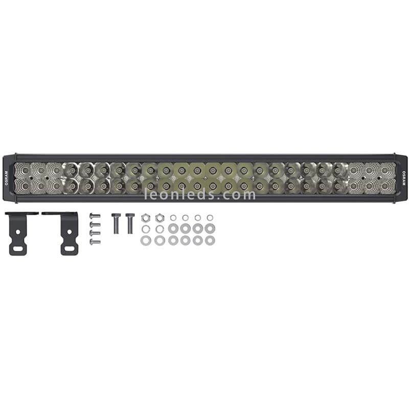 Barre LED Combo Homologuée avec des optiques combo, elle combine lumière longue portée dans la partie centrale et lumière large champ aux extrémités, le fabricant est Osram et le modèle est VX500-CB LEDDL118-CB avec une puissance totale de ses 48 haute- Puces d'alimentation d'Osram de 72W et une intensité lumineuse de 4 100Lm, valable pour 12V et 24V , comprend 45Cm de câble, dimensions voir la photo et degré de protection contre l'eau et la poussière de IP67. Gamme Osram d'origine avec 2 ans de garantie.
