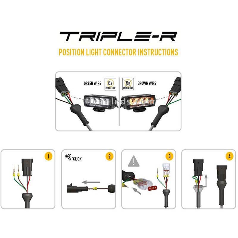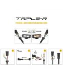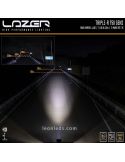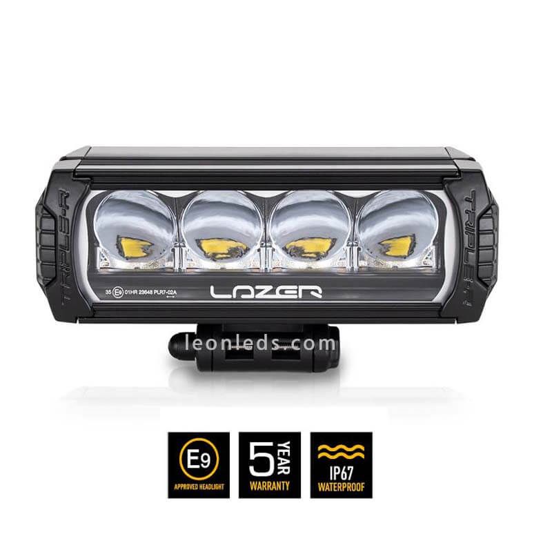 Barre LED triple homologuée R 750 Génération 2 avec feu de position de marque Lazer d'une puissance de 45W, 4,620Lm d'intensité lumineuse, tension admise de 9V à 32V et une longueur totale de 270mm, (voir dimensions sur une des photos). Permet le connecteur pour le feu de position blanc (homologué en Espagne) ou avec le feu de position jaune (non homologué), comprend le manuel pour effectuer ces deux connexions.