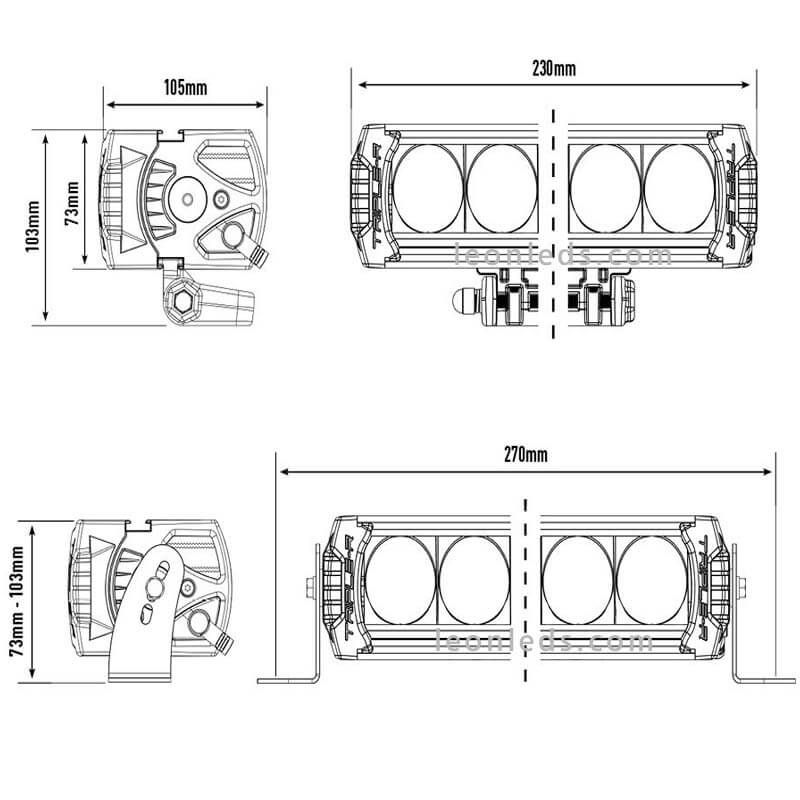 Le modèle Triple R 750 Gen 2 a une puissance de 45w, une intensité lumineuse de 4620Lm et une longueur de 27cm. Le reste des mesures peut être vu sur l'une des photos. Avec seulement 27 cm de longueur, la barre LED R 750 Gen 2 est la meilleure option en cas d'espaces réduits à l'avant de la voiture, camion ou véhicule 4X4 ou Buggy.