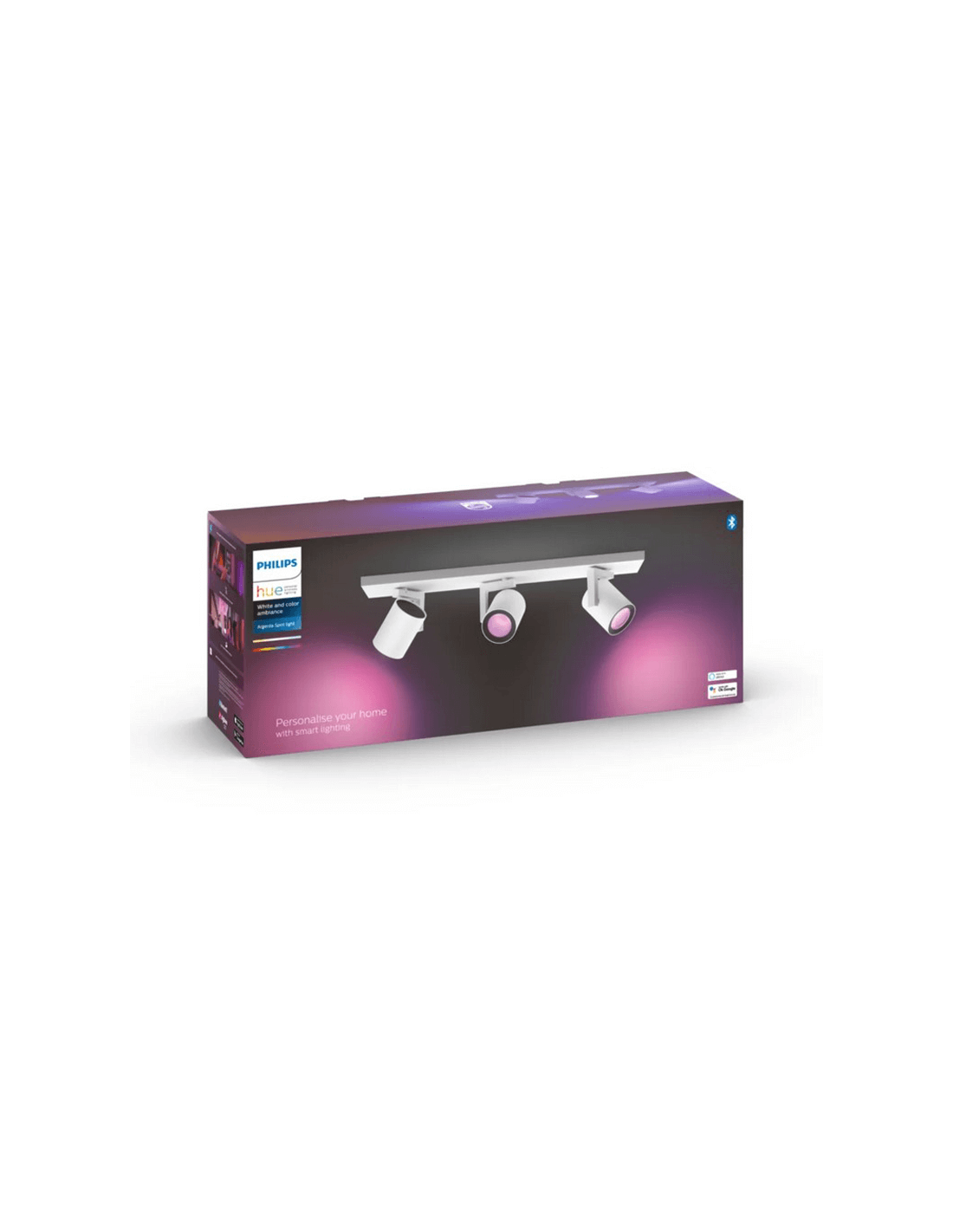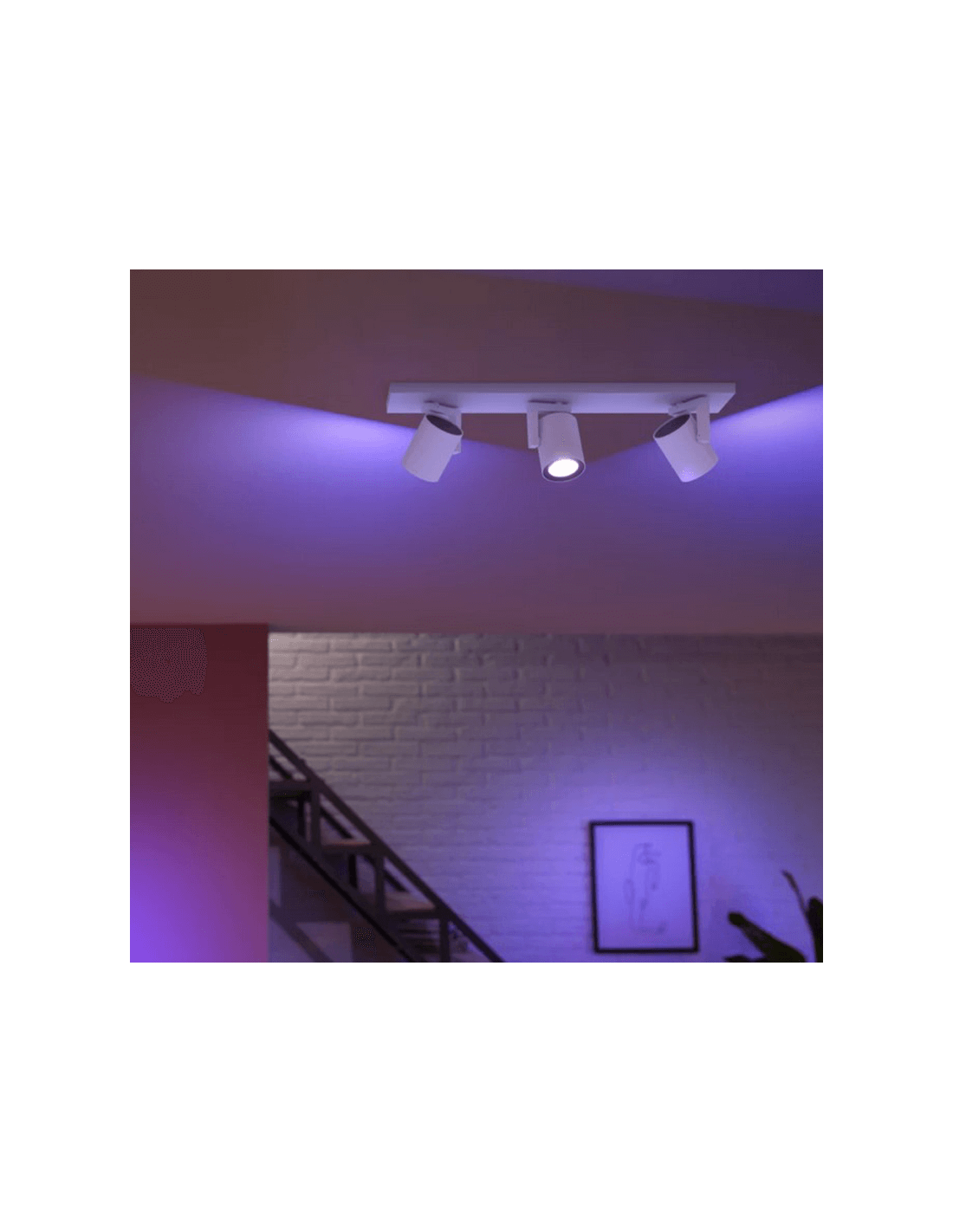 La bande lumineuse intelligente ARGENTA 3 combine un design moderne avec une technologie d'éclairage avancée. Il vous permet de régler la température de couleur d'une lumière chaude de 2000K à une lumière froide de 6500K, et grâce aux technologies Hue White et Color Ambiance, vous pouvez choisir parmi des millions de couleurs pour créer l'atmosphère parfaite pour toute occasion. Ses trois têtes réglables permettent de diriger facilement la lumière vers des zones spécifiques, en s'adaptant à vos besoins.