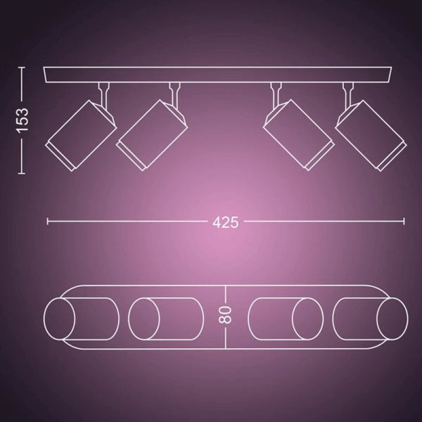La bande lumineuse intelligente LED FUGATO avec 4 combine un design élégant avec une technologie d'éclairage avancée. Chaque ampoule de 4,2 W fournit 400 lumens, pour un total de 1 600 lumens, et vous permet de régler la température de couleur d'un chaud 2 000 K à un froid 6 500 K. De plus, grâce aux technologies Hue White et Color Ambiance, vous pouvez choisir parmi des millions de couleurs pour créer l'atmosphère parfaite pour toute occasion. Les spots orientables permettent d'orienter facilement la lumière vers des zones spécifiques, en s'adaptant à vos besoins.