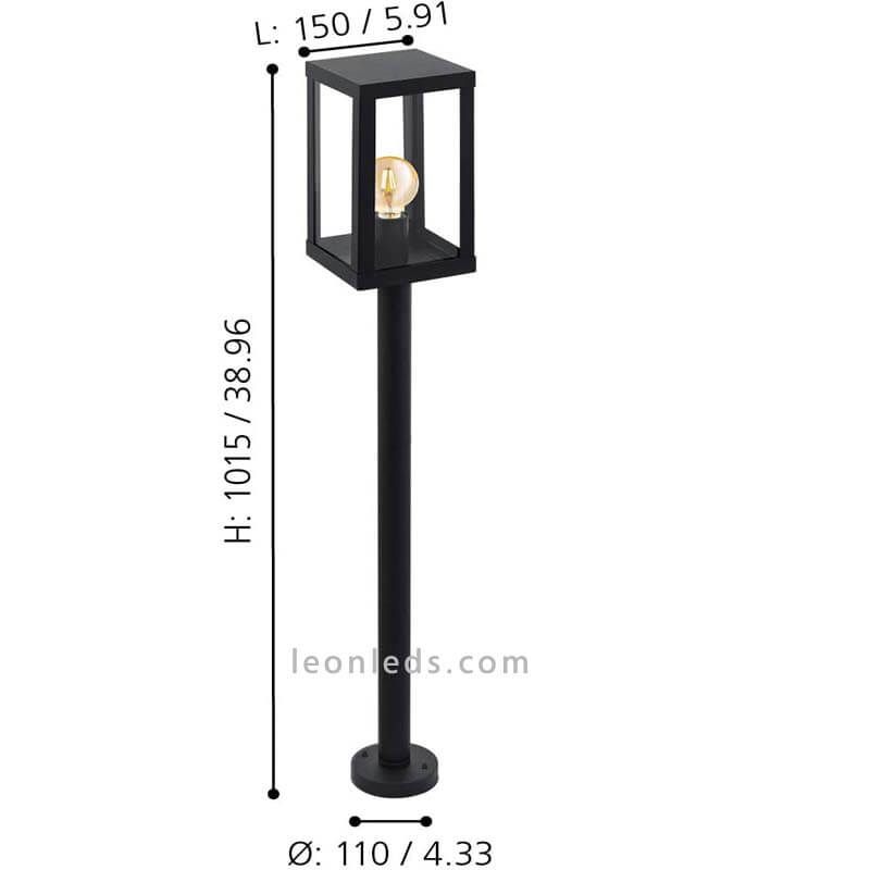 Le Gyrophare d'extérieur en acier E27 Alamonte d'Eglo Iluminación est composé d'un long support cylindrique en acier galvanisé noir avec un rectangle creux en verre transparent au sommet où se trouve une douille pour installer une ampoule de type E27 (non incluse). puissance de 60W.