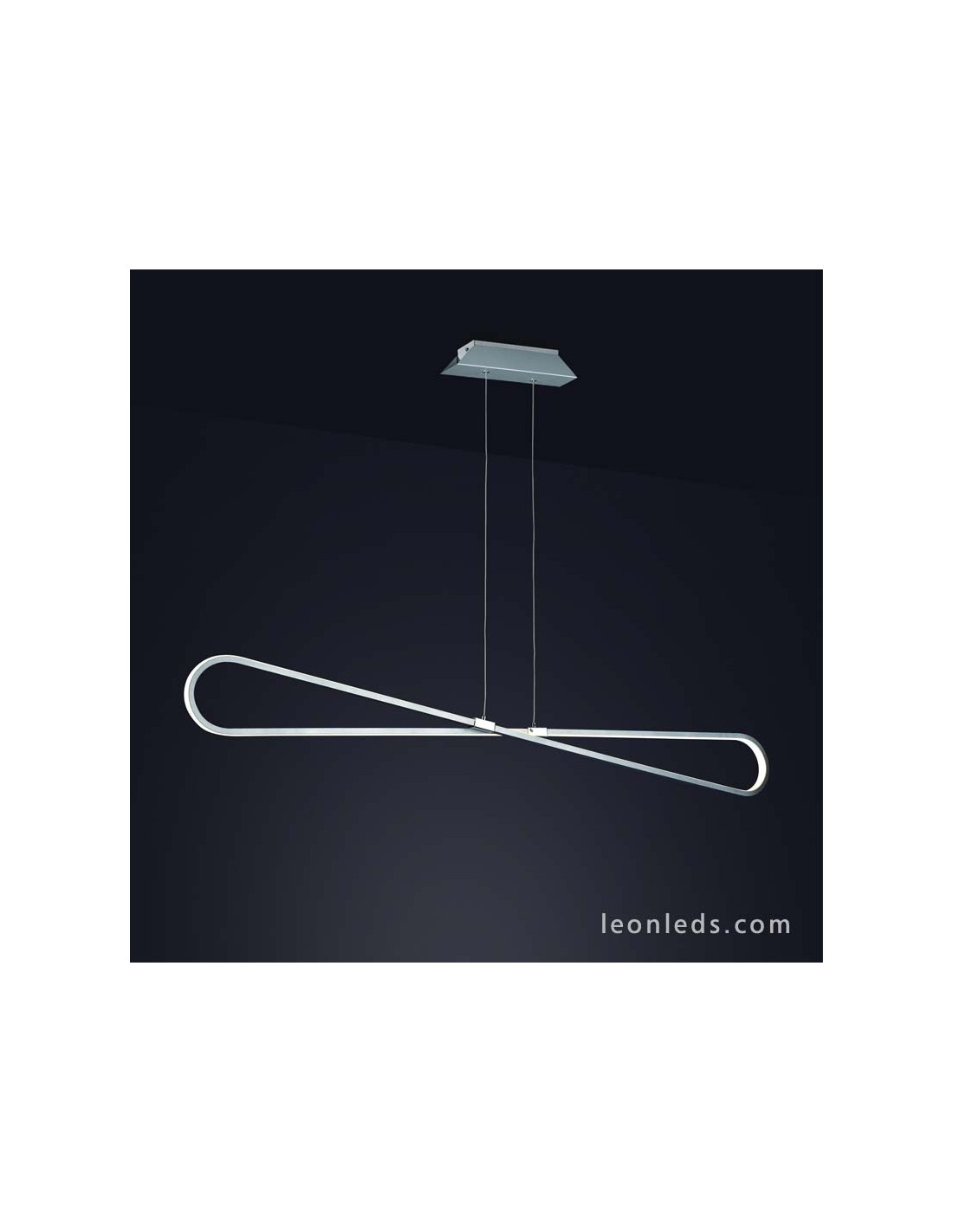 Suspension LED de la série Bucle en argent, chrome et diffuseur acrylique avec une puissance de 42W, une couleur de lumière de 3000K Blanc chaud et une puissance lumineuse de 3650Lm.