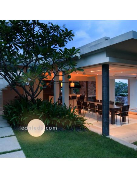 Le grand avantage de ces lampes en forme de boule pour les jardins extérieurs et les terrasses est qu'elles nécessitent l'installation d'une ampoule avec une douille E27 qui n'est pas incluse, nous pouvons donc sélectionner la nuance de lumière que nous aimons le plus entre une couleur froide température, naturelle ou chaude. Pour son bon fonctionnement, il doit être connecté au réseau électrique et il est totalement protégé contre l'eau et la poussière car il a un niveau IP44.
