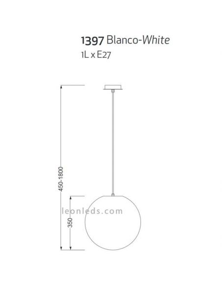 Boule suspendue blanche pour terrasse extérieure IP44 1XE27 Avoriaz par Mantra Iluminación C'est la meilleure option pour organiser vos événements et vos fêtes cet été. C'est une lampe qui vous permettra d'éclairer chaque recoin de votre patio, terrasse ou porche quelle que soit sa hauteur, grâce à son câble entre 45 et 180 cm. De plus, le diamètre de la balle est disponible en 3 tailles :
