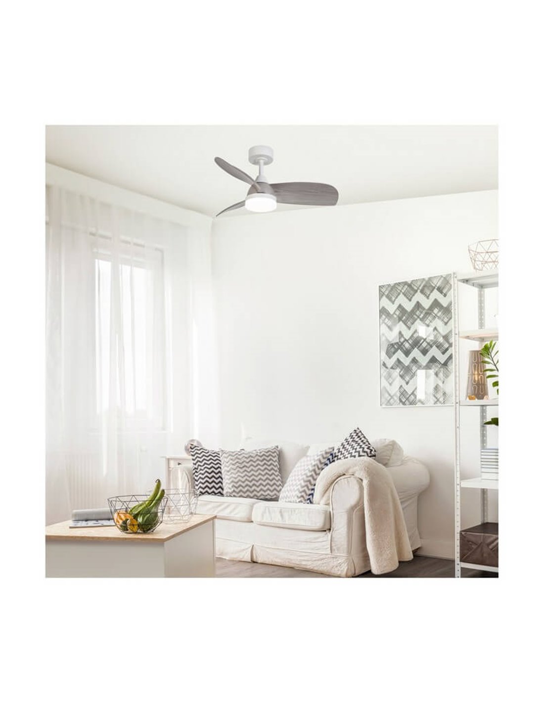 Ventilateur LED BYAN Blanc+Frêne 18W 2000Lm CCT Dim