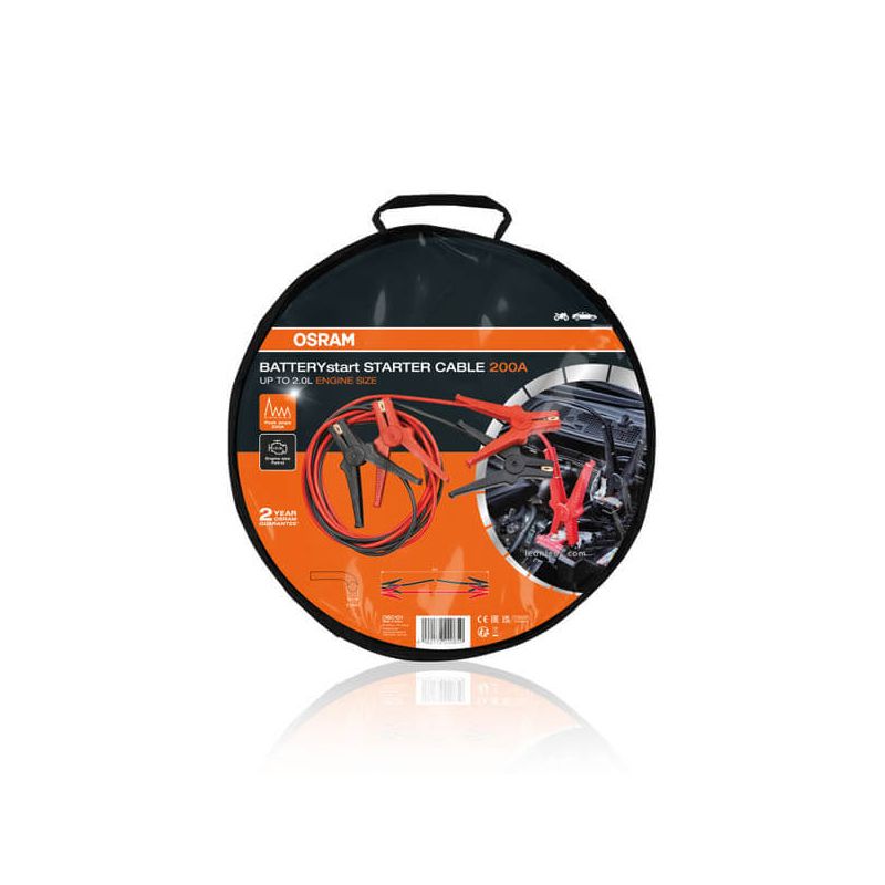 Démarreur pour voitures et motos avec moteurs à essence et diesel d'une capacité de ≤ 2,0 L, prend en charge 200 A au démarrage et 100 A en continu et convient aux tensions de 6 V à 12 V, le câble mesure 3 mètres de long et les pincettes sont isolées et codées par couleur. Il est livré avec un sac de rangement. 2 ans de garantie.