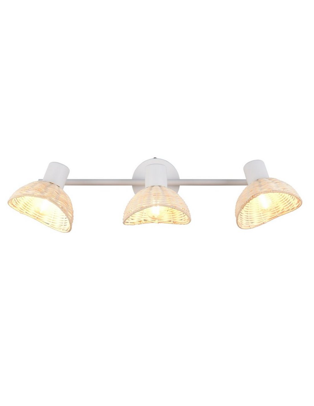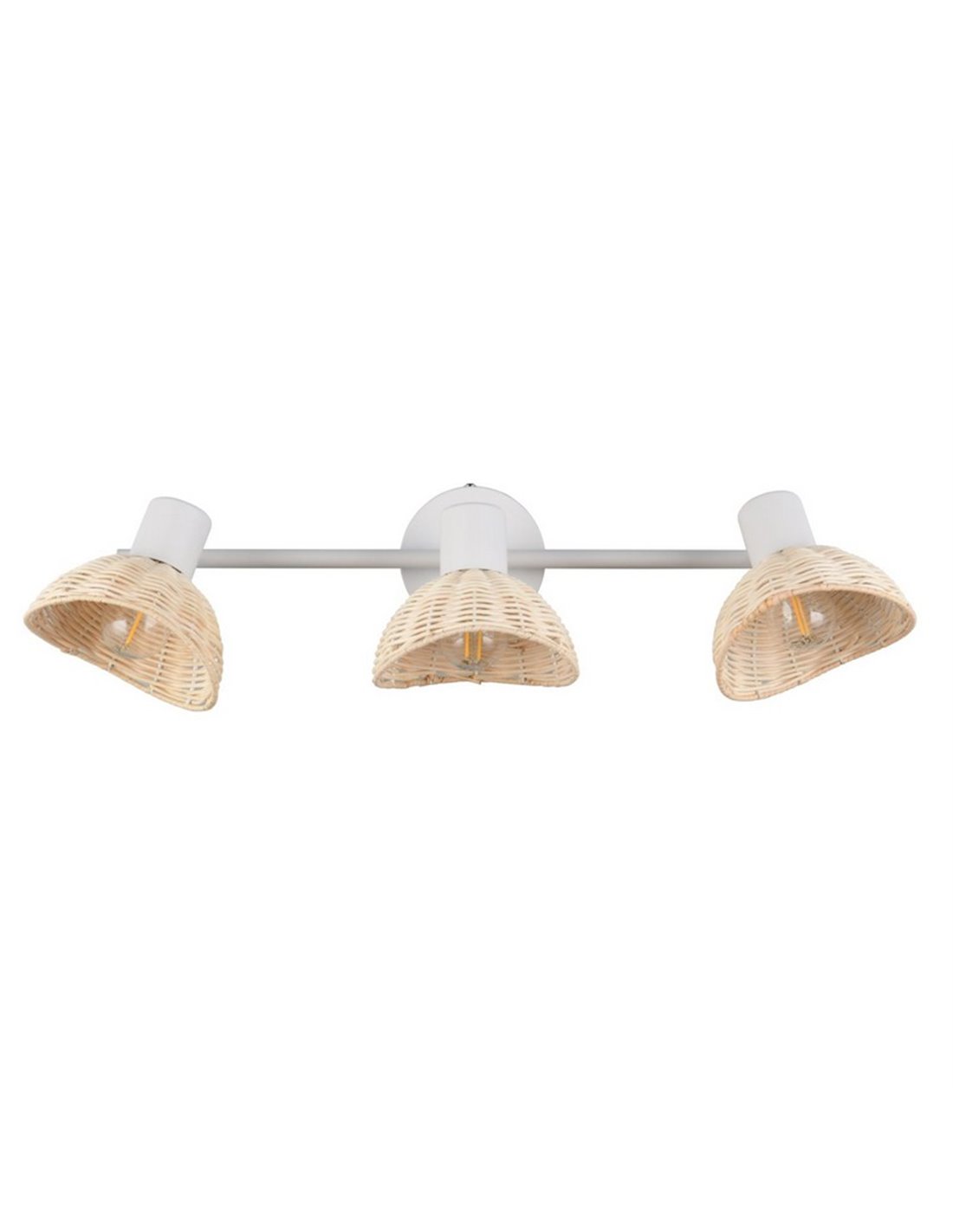 Le plafonnier CALVI se distingue par son style naturel et sa structure en métal blanc associée à des abat-jour en rotin tressé . Doté de trois spots orientables, ce luminaire diffuse une lumière chaleureuse et accueillante, idéale pour les intérieurs d'inspiration méditerranéenne ou nordique.