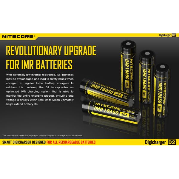 Il est également compatible avec les batteries IMR, Li-ion et LiFeP04 : 26650, 22650, 18650, 18350, 18490, 18500, 17670, 17500, 14500, 10440, 16340 (RCR123).