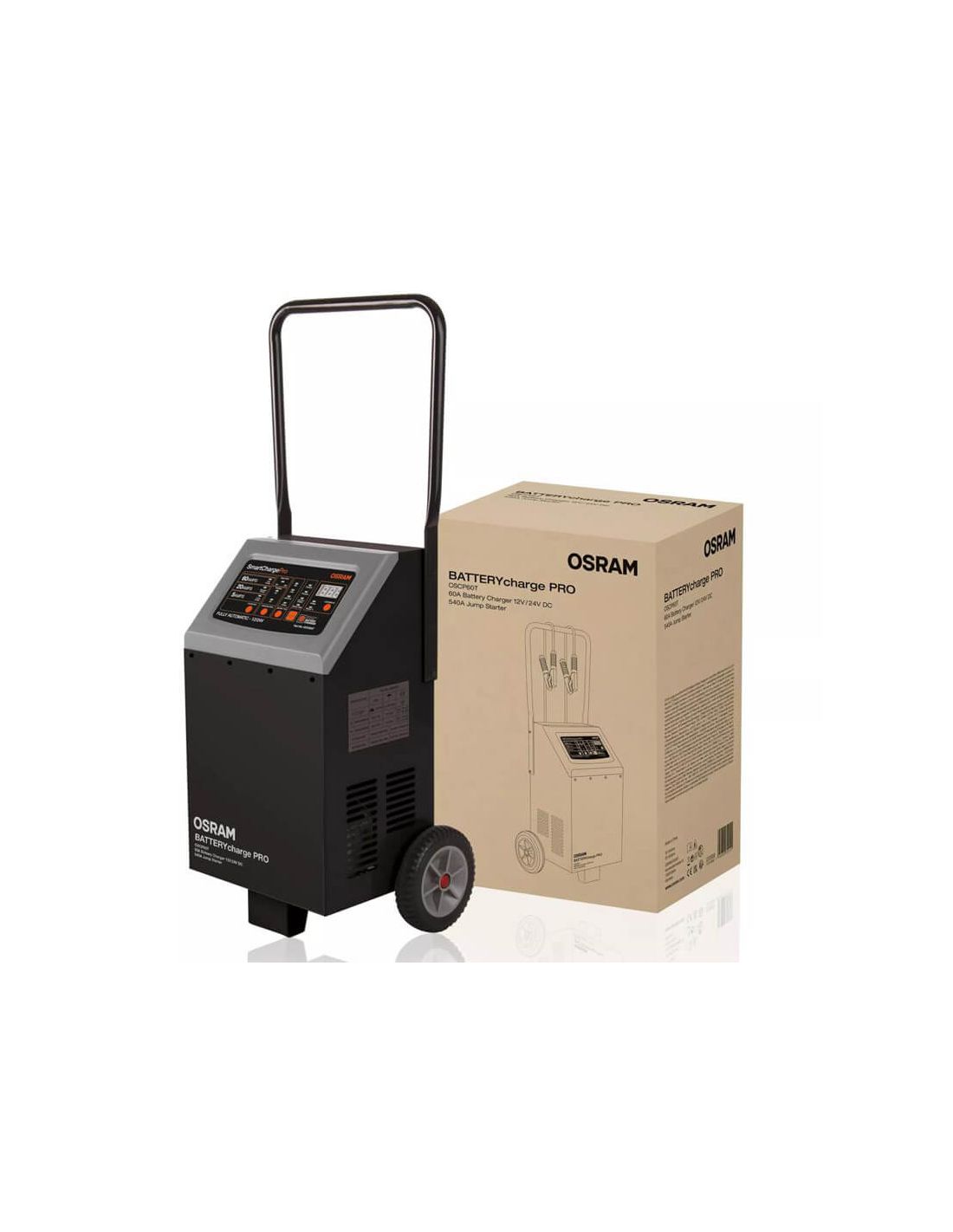 L' OSRAM BATTERYcharge PRO 60A est un chargeur de batterie intelligent et professionnel avec fonction de démarrage et de charge jusqu'à 60A , conçu pour les voitures, les camions, les motos et les bateaux . Portable avec roulettes et poignée, idéal pour les ateliers et les concessionnaires .