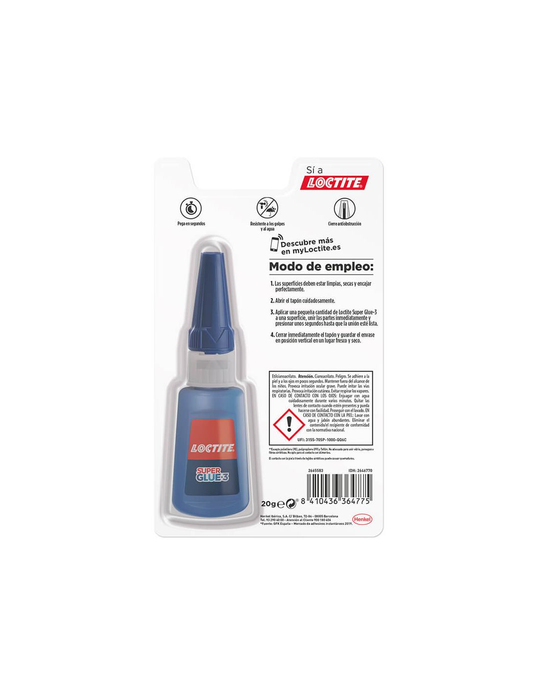 Colle liquide grand format LOCTITE SG3 XXL , ultra-résistante et à prise rapide. Résistante à l'eau, aux chocs et aux températures extrêmes. Idéale pour le métal, le plastique, la porcelaine, le caoutchouc, le bois, etc.