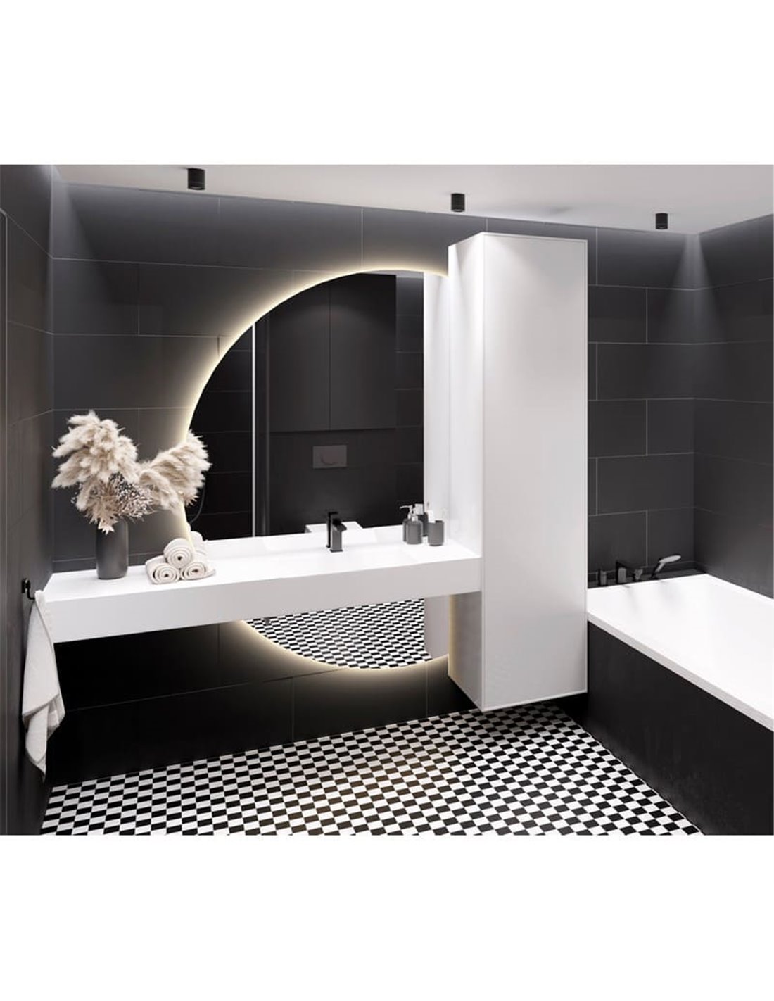 Miroir de salle de bain avec lumière LED BARI : Découvrez l'élégance et la fonctionnalité de ce miroir rond Ø140X70cm. Éclairage LED intégré de 40 W, température de couleur de 3000 K et un puissant flux lumineux de 2749 lm. Indice IP44 et CRI90 pour une expérience visuelle exceptionnelle dans votre salle de bain.