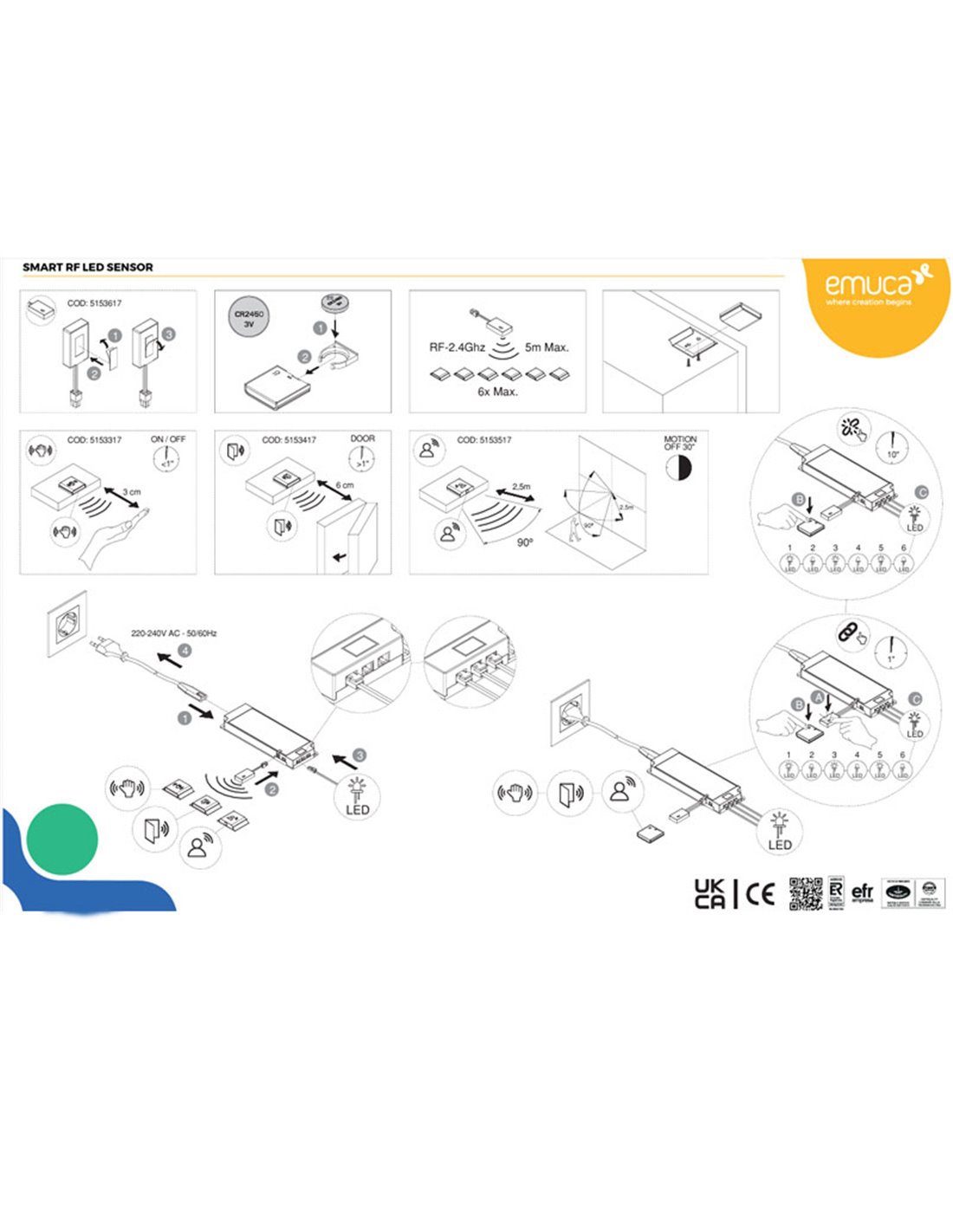 L'émetteur RF Emuca avec capteur LED Smart Door est la solution idéale pour ceux qui cherchent à automatiser l'éclairage de leurs meubles. Ce capteur de proximité allume et éteint automatiquement les lumières LED lorsqu'une porte est ouverte ou fermée, améliorant ainsi la fonctionnalité et l'efficacité énergétique de vos espaces.