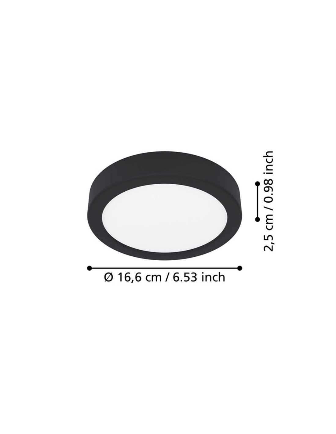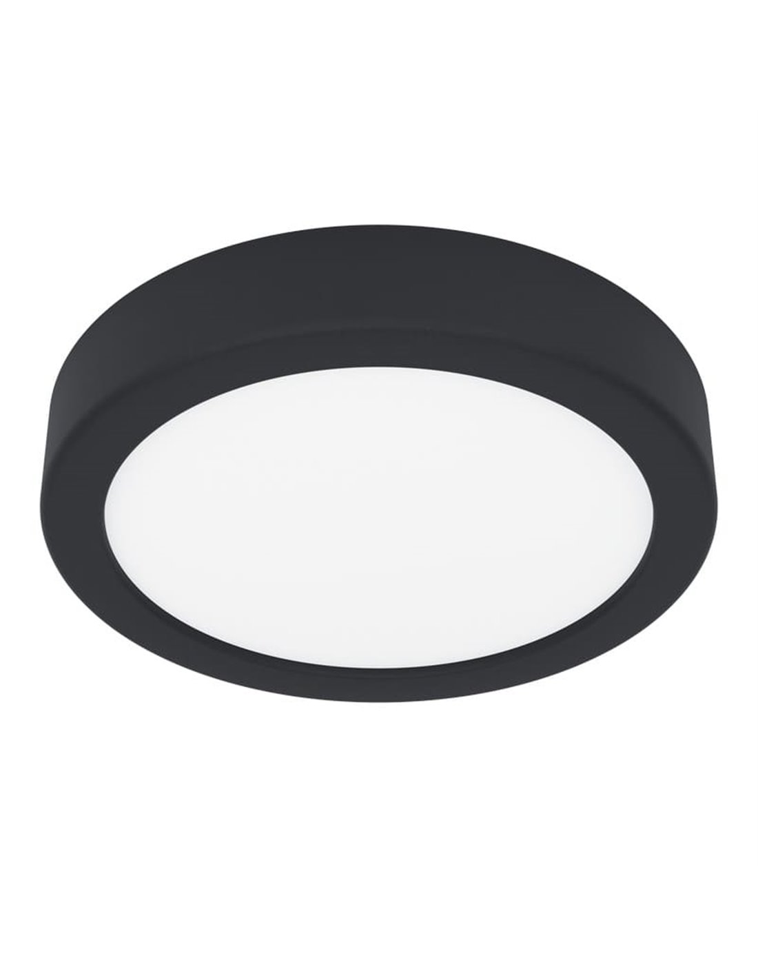 Downlight LED en saillie FUEVA 6 Ø 165 mm, 7,5 W, 1 000 lm, CCT IP20, noir , au design minimaliste, avec seulement 25 mm d'épaisseur. Il offre 7,5 W et 1 000 lm avec une lumière variable en CCT (2 700 K-6 500 K). Dimensions : Ø 166 mm x 25 mm.
