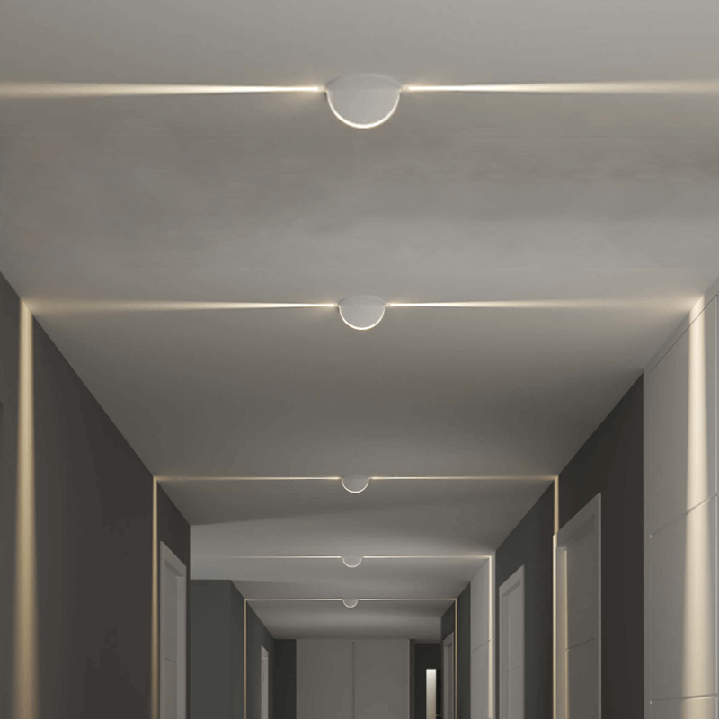 Le Downlight LED encastré Spectra d'ACB Iluminación présente une structure simple en demi-cercle suspendue au plafond en aluminium et acrylique. Il a une hauteur de 9 centimètres.