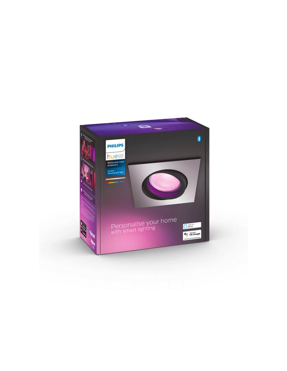 Downlight LED encastrable intelligent et réglable carré en aluminium CENTURA 4,2 W 400 Lm 2000-6500 K Hue Ambiance de couleur blanche - Philips Hue
