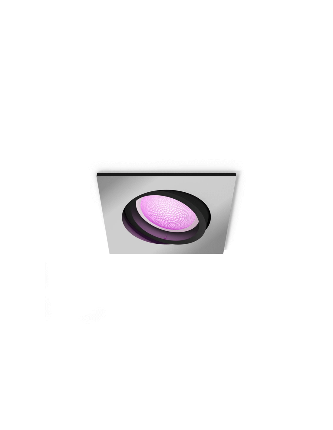 Le Downlight Encastrable LED Philips Hue CENTURA Smart au format carré et finition aluminium allie un design moderne et discret à une technologie d'éclairage avancée. Il permet de régler la température de couleur d'une lumière chaude de 2000K à une lumière froide de 6500K, en plus d'offrir l'accès à plus de 16 millions de couleurs grâce aux technologies Hue White et Color Ambiance. Sa tête réglable permet de diriger facilement la lumière vers des zones spécifiques, s'adaptant aux différents besoins et environnements.