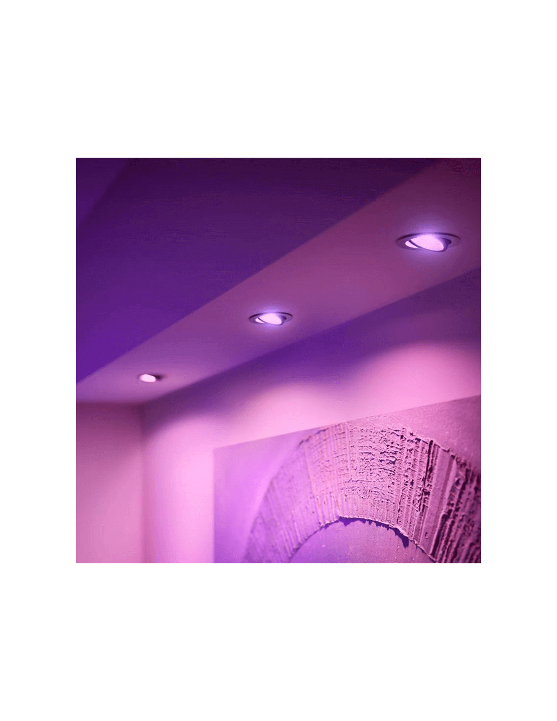 Le Downlight encastré LED Philips Hue CENTURA Smart en finition aluminium allie un design moderne et discret à une technologie d'éclairage avancée. Il permet de régler la température de couleur d'une lumière chaude de 2000K à une lumière froide de 6500K, en plus d'offrir l'accès à plus de 16 millions de couleurs grâce aux technologies Hue White et Color Ambiance. Sa tête réglable permet de diriger facilement la lumière vers des zones spécifiques, en s'adaptant aux différents besoins et environnements.