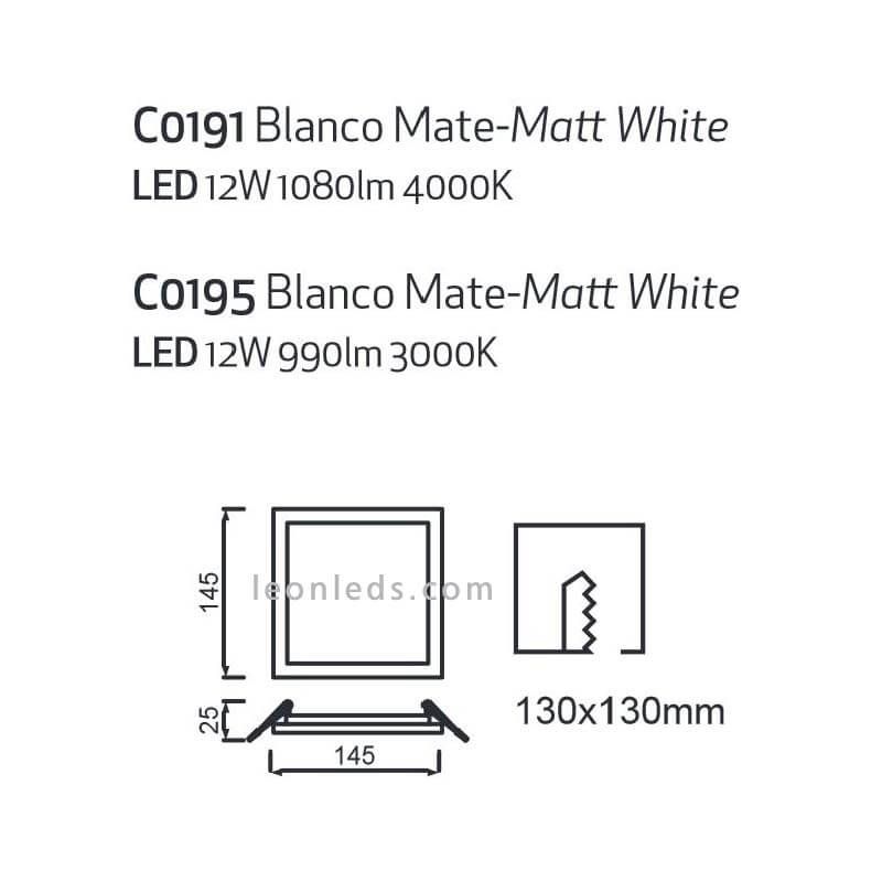 Downlight LED Saona grand et carré 17,5Cm et 18W