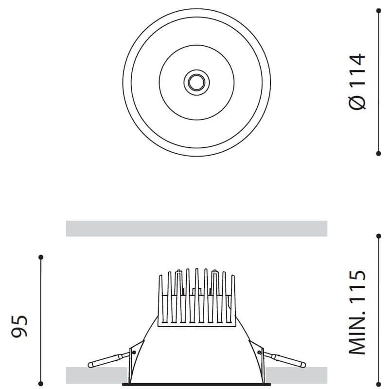Le downlight Lex Mini LED a une puissance de 12W et est disponible en 3 tons de lumière : 2700K (1400Lm), 3000K (1460Lm) et 4000K (1480Lm). De plus, la Lex Mini est également disponible avec gradation de l'intensité lumineuse (protocole DALI ou Push) et sans gradation.