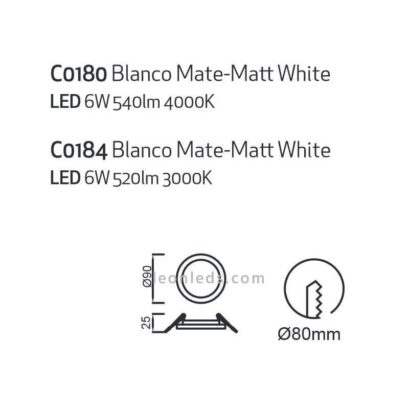 Downlight LED rond Saona 6W petit format 9Cm d'une puissance de 6W, d'une intensité lumineuse de 520Lm à 3000K et 540Lm à 4000K de la série Saona, disponible en 2 teintes de lumière, Warm Light 3000K et Natural Light 4000K.