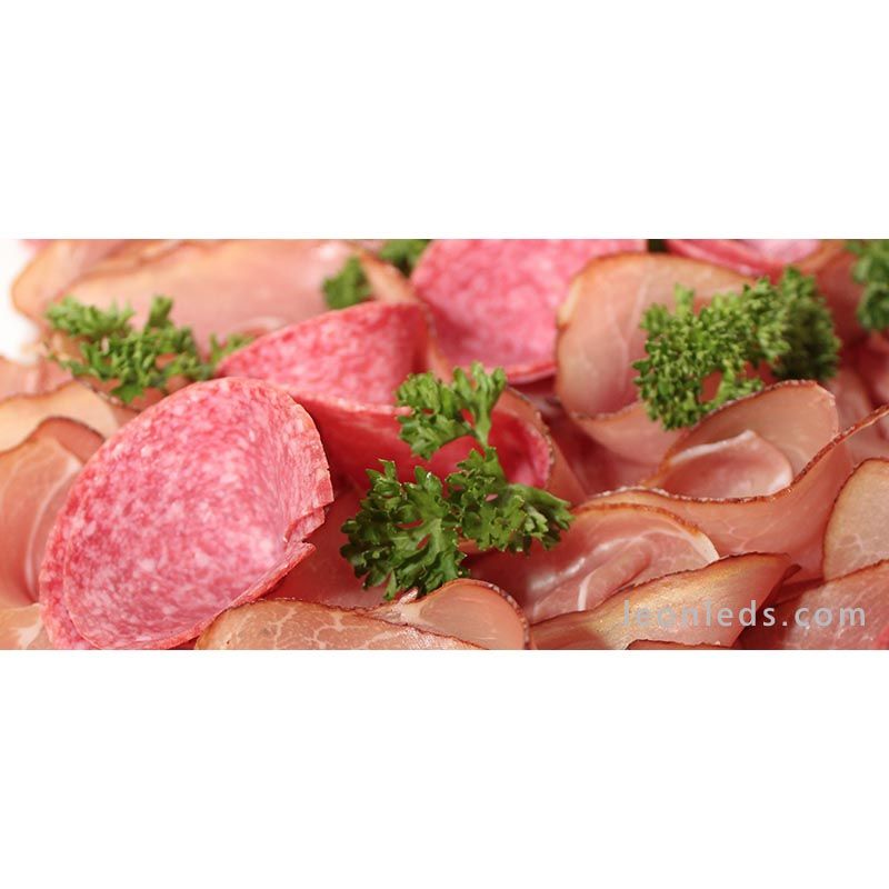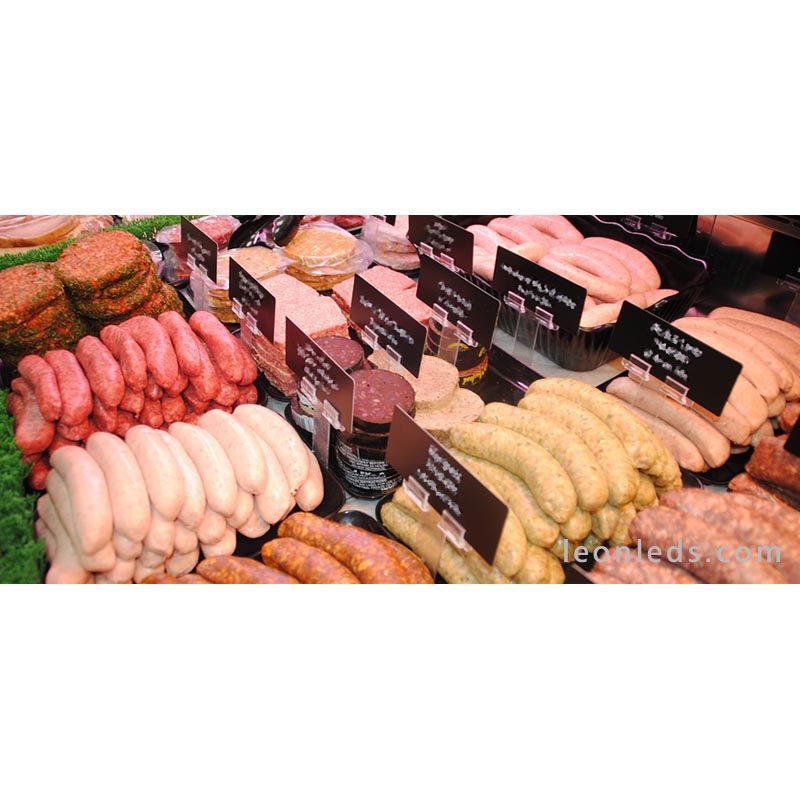 Nous pouvons installer ce Downlight LED au plafond de la boucherie, juste au-dessus des vitrines où nous présentons la viande rose (Sausage) ou au-dessus des réfrigérateurs où nous avons la saucisse emballée. Avec ce LED Donwlight, la saucisse aura un aspect beaucoup plus appétissant, les tons rouges et roses seront renforcés, obtenant une plus grande attention au genre de nos clients, en respectant la couleur blanche. L'effet créé sur la saucisse est très difficile à obtenir avec d'autres fabricants, l'Achilles II intègre une puce LED de qualité supérieure.