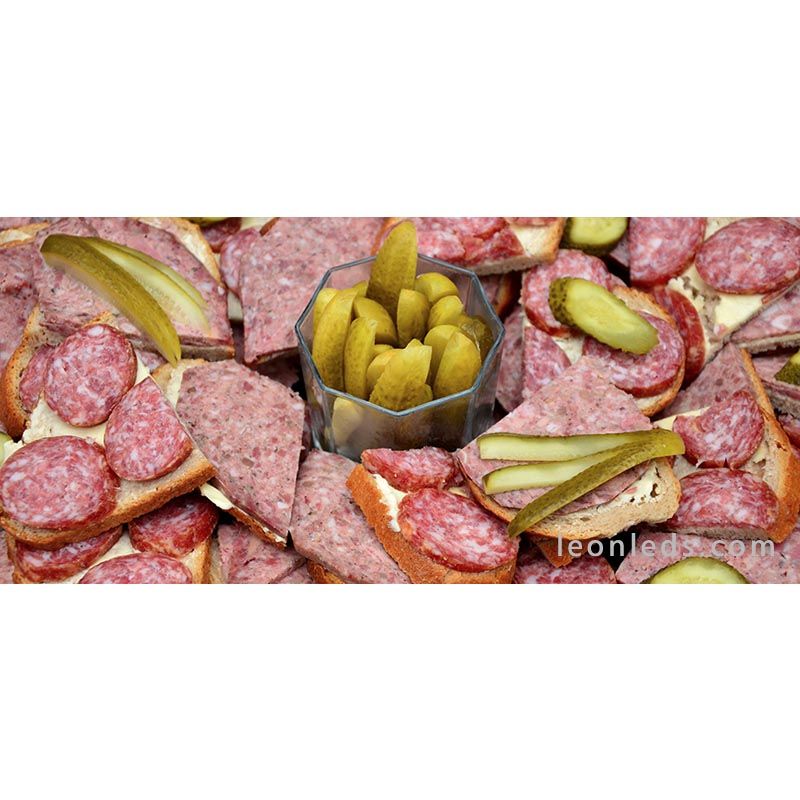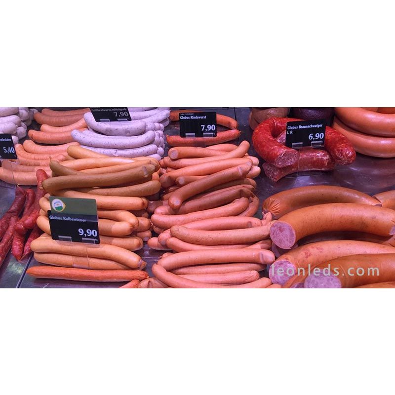 Nous pouvons installer ce Downlight LED au plafond de la boucherie, juste au-dessus des vitrines où nous présentons la viande rose (Sausage) ou au-dessus des réfrigérateurs où nous avons la saucisse emballée. Avec ce LED Donwlight, la saucisse aura un aspect beaucoup plus appétissant, les tons rouges et roses seront renforcés, obtenant une plus grande attention au genre de nos clients, en respectant la couleur blanche. L'effet créé sur la saucisse est très difficile à obtenir avec d'autres fabricants, l'Achilles II intègre une puce LED de qualité supérieure.