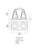 Sa structure métallique et de couleur blanche s'étend sur 19,5 centimètres de long sur 10 centimètres de large. De plus, la structure constitue 12 centimètres, qui sont ceux qui sont complètement immergés et encastrés dans le mur, de sorte que le downlight est parfaitement intégré au plafond.