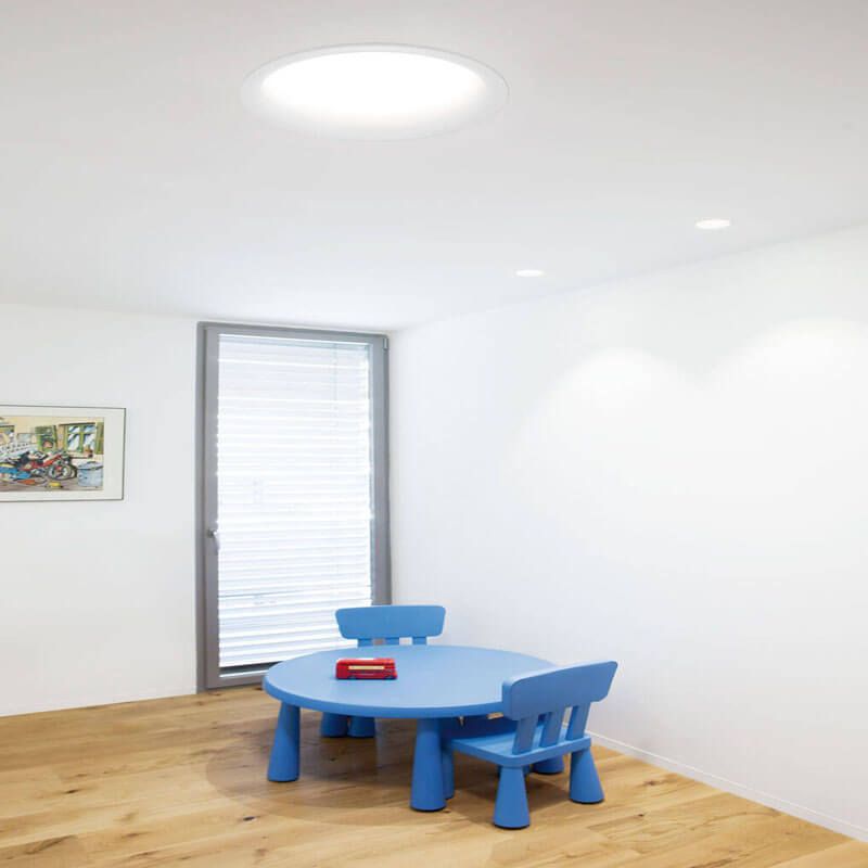 Ce modèle Drop Maxi 4 LED Downlight se distingue par son design moderne et son diffuseur de lumière encastré, créant un effet lumineux unique, une fois installé il offre un effet visuel que la lumière se propage depuis l'intérieur du plafond.