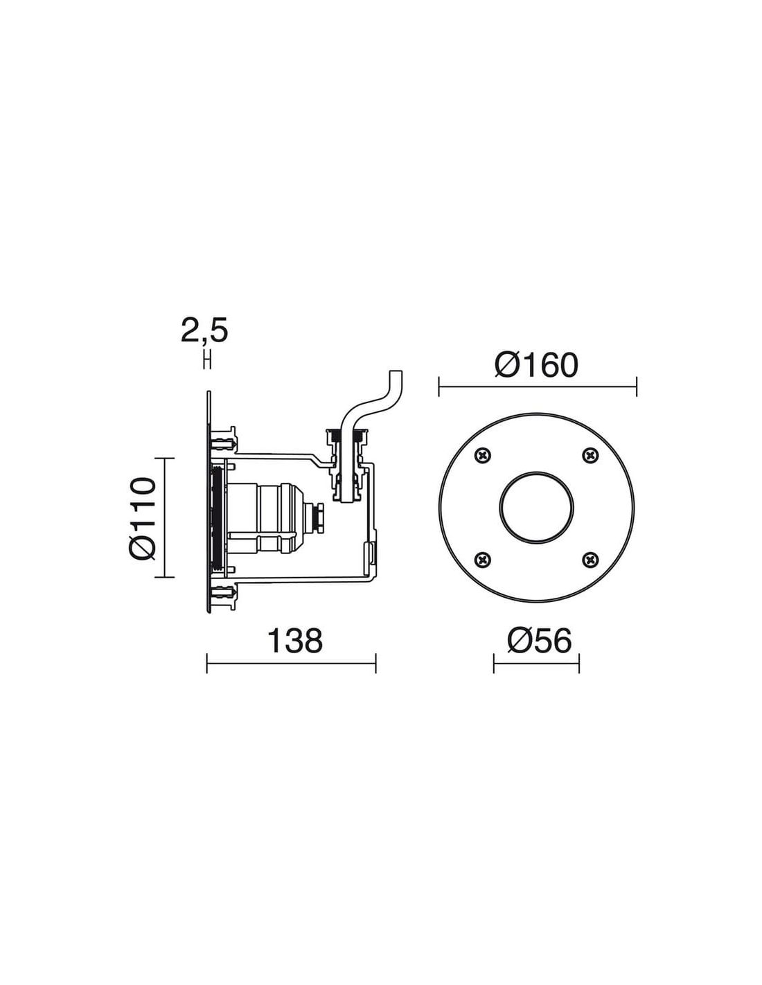 Avec un diamètre d'encastrement de 110 mm, le luminaire encastrable PAL est facile à installer sur les murs et les surfaces solides . Il est important de noter qu’il est conçu spécifiquement pour les piscines en béton, offrant ainsi un éclairage sûr et durable dans ce type d’environnements.