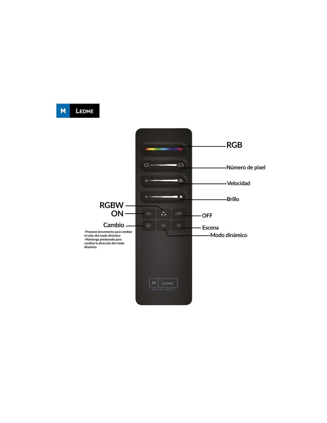 La télécommande RF pour contrôleurs RGBW SPI/IC est un dispositif de contrôle sans fil conçu pour une utilisation pratique et précise des systèmes d'éclairage LED numériques professionnels . Cette télécommande fonctionne comme un émetteur de signal radiofréquence , envoyant des commandes au contrôleur SPI/IC pour effectuer des changements de couleur, des variations d'intensité et des effets.