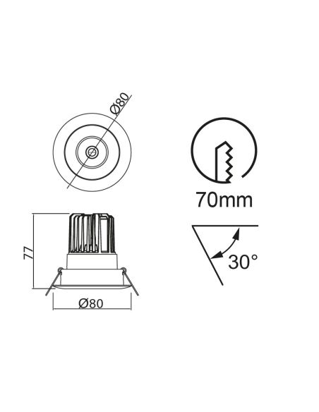 Le luminaire encastrable LED Formentera éclaire avec une puissance de 7W , un flux de 610 lumens et une température de couleur de 3000K, ou avec la même puissance avec un flux de 650 lumens et une température de couleur de 4000K. Son éclairage est efficace et nous offre un angle d'éclairage de 30 degrés .
