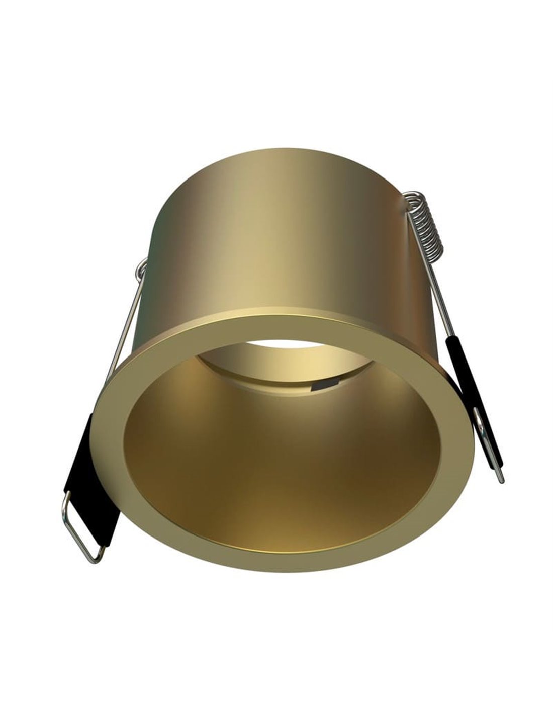 Encastré rond moderne MALT doré, compatible avec les ampoules GU10 (non fournies) jusqu'à 12 W. Fabriqué en aluminium avec une élégante finition or satiné, il est idéal pour les projets d'éclairage décoratif nécessitant une touche sophistiquée. Installation encastrée avec une découpe de 60 mm de diamètre et un système à ressort.