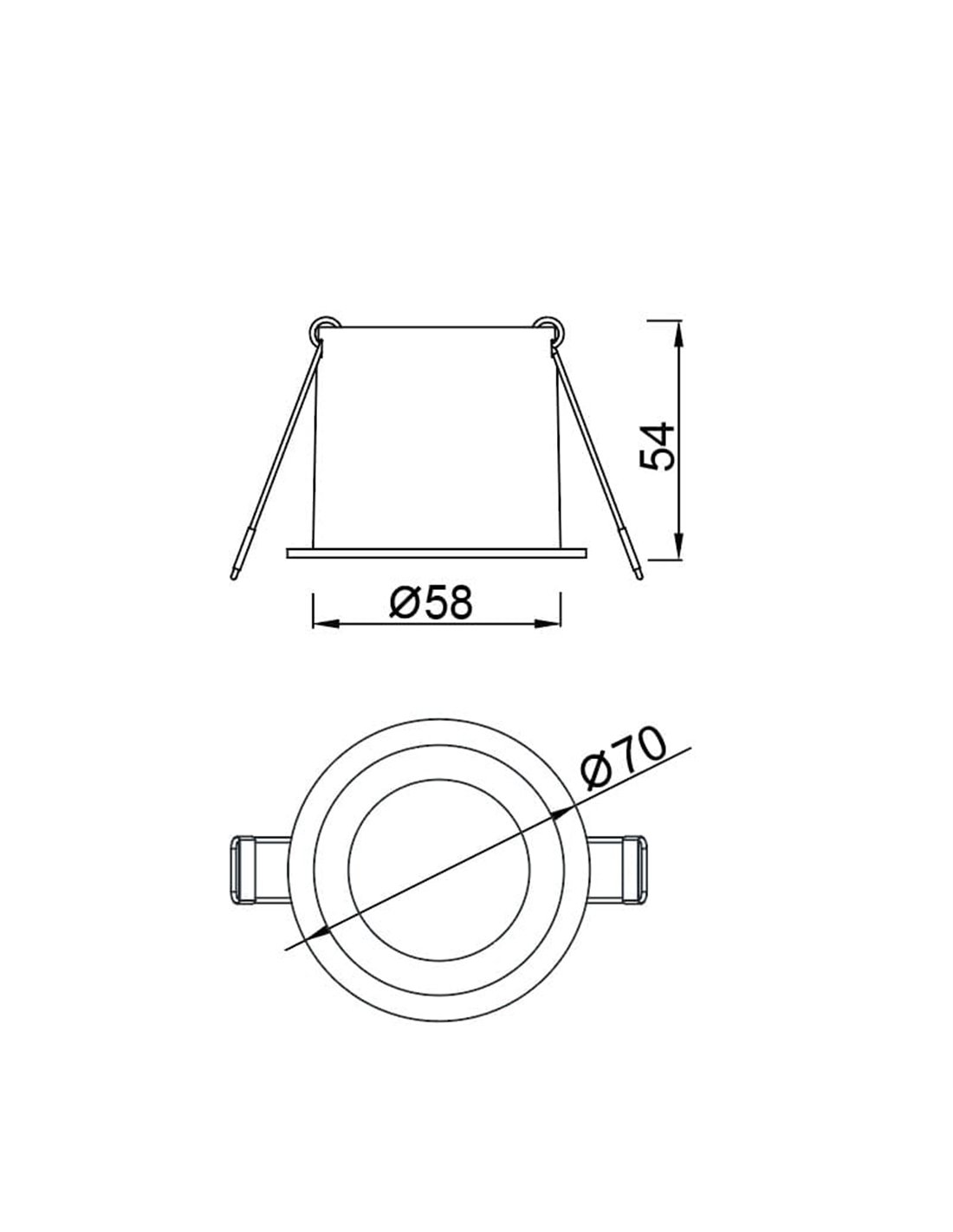 Dimensions : ↕ 54 mm | Ø 70 mm (extérieur) | Ø 60 mm (coupé)