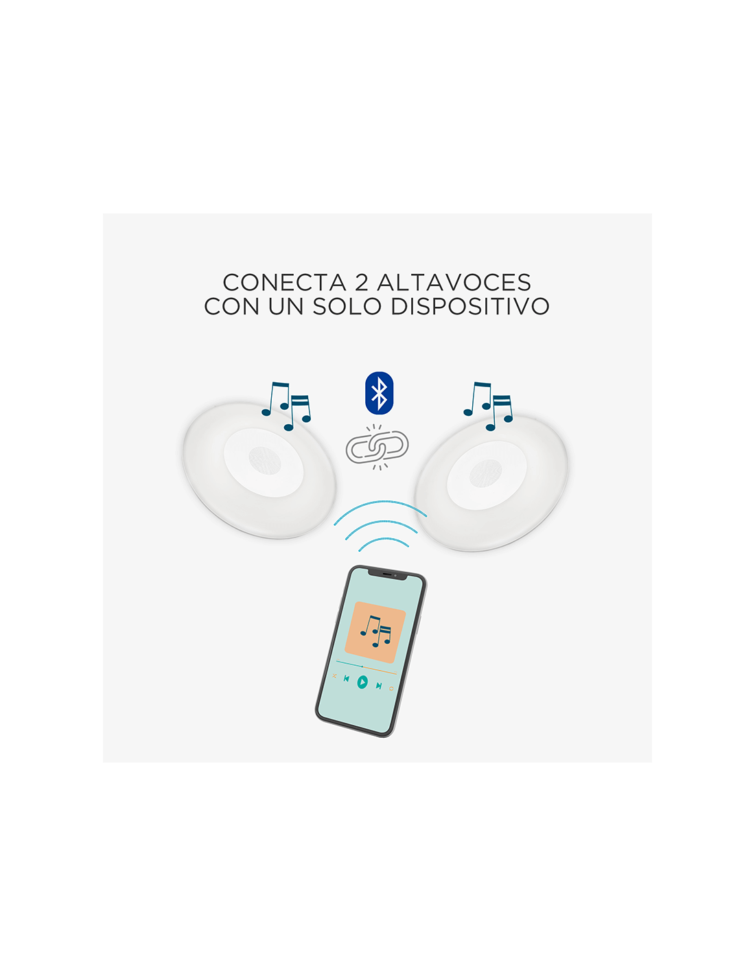 Play Disk Light&Music est une proposition d'éclairage très originale avec son , puisqu'il intègre des haut-parleurs. De cette façon, vous pouvez créer toutes sortes d'environnements à l'extérieur. Cela s'ajoute à ses lumières RVB (rouge, verte et bleue) , nous donnant la possibilité de recréer toutes sortes de scénarios : relaxant, festif, etc.