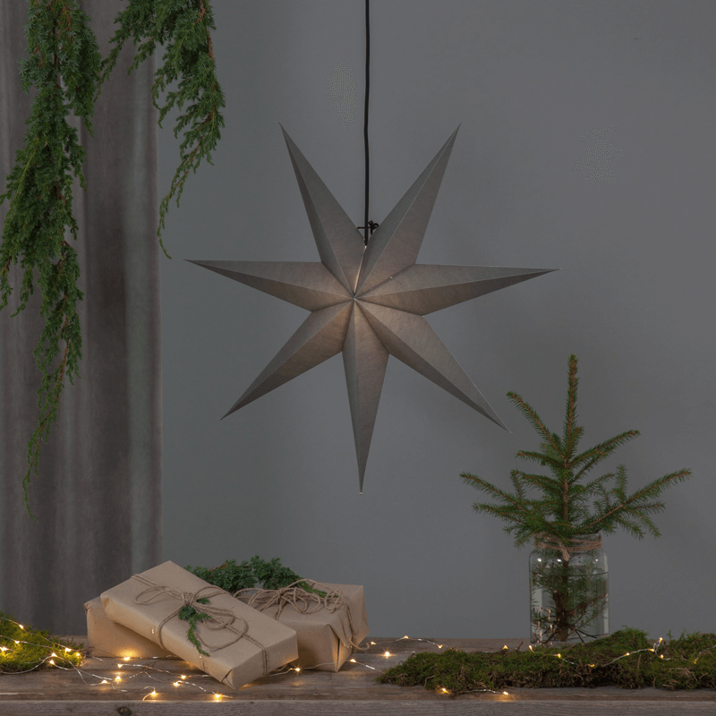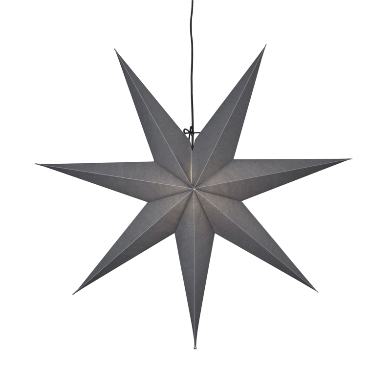 Les dimensions de l'étoile en papier à suspendre de couleur noire sont de 700 millimètres de long, 160 mm de large, 700 mm de haut, avec un poids très léger de 0,31 kg et donc facile à manipuler. Bien que ce ne soit pas le seul avantage de ce luminaire en forme d'étoile.