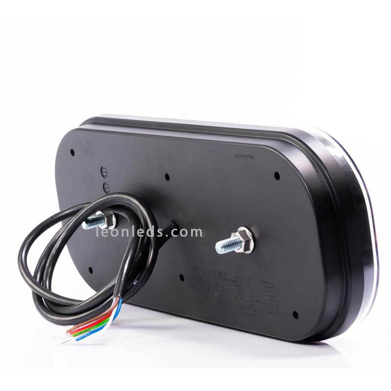 Feu arrière à LED homologué avec clignotant progressif de la marque Fristom, modèle FT-600, à 6 ou 7 fonctions, compatible avec les tensions de 12 V à 36 V et disponible avec un câble d'un mètre, idéal pour une installation sur les camions semi-rigides, les 4x4, les fourgonnettes, les camions rigides, les poids lourds ou les remorques. Dans ce cas, vous devez installer le triangle réfléchissant à côté de ce feu.