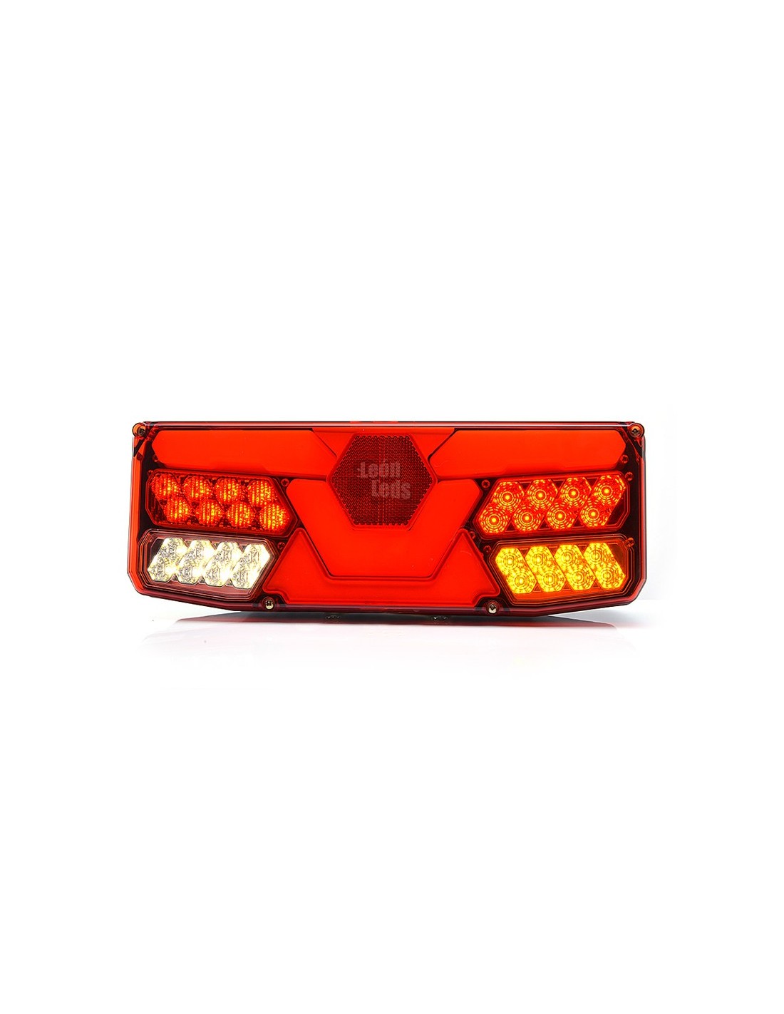 Feu LED à installer dans des camions rigides ou des camionnettes, avec 2 mètres de câble valable pour les installations 12V et 24V, avec 6 fonctions dans le feu droit et 7 fonctions dans le feu gauche.