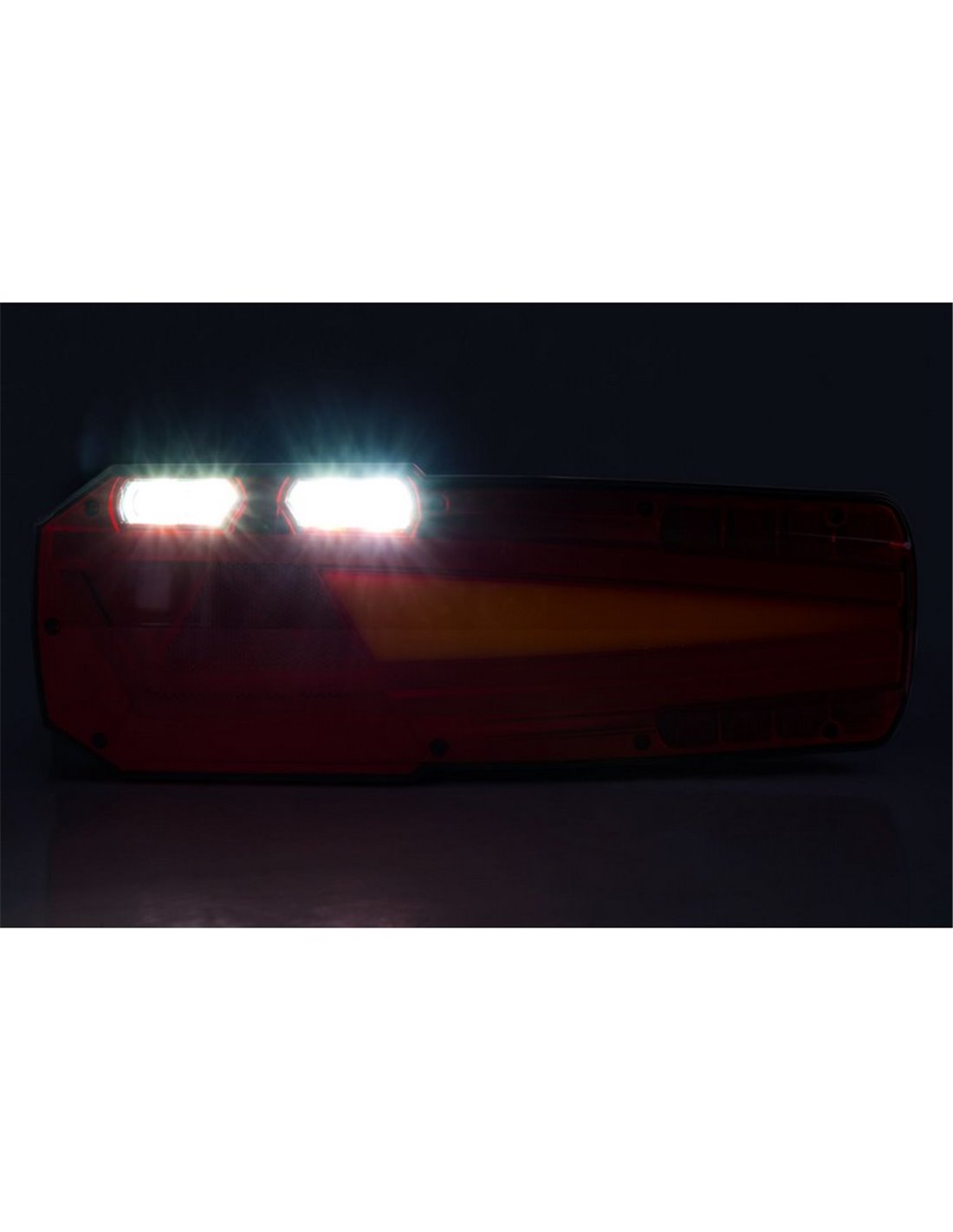 Feu arrière combiné à LED MAVIC avec prise et réflecteur , pour systèmes 12/24 V , entièrement étanche IP68 , avec technologie NEON et 91 LED . Équipé d' une prise AMP 7 broches , idéal pour les fourgonnettes, tracteurs, grues , véhicules spéciaux et engins agricoles .