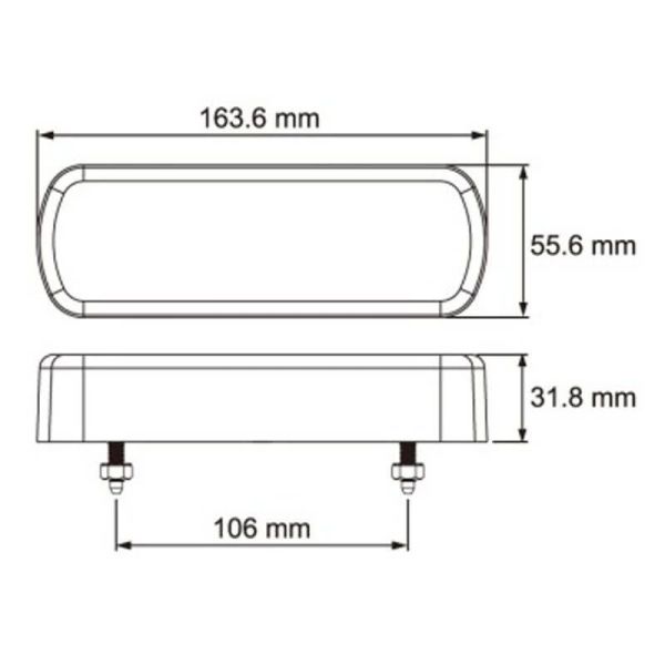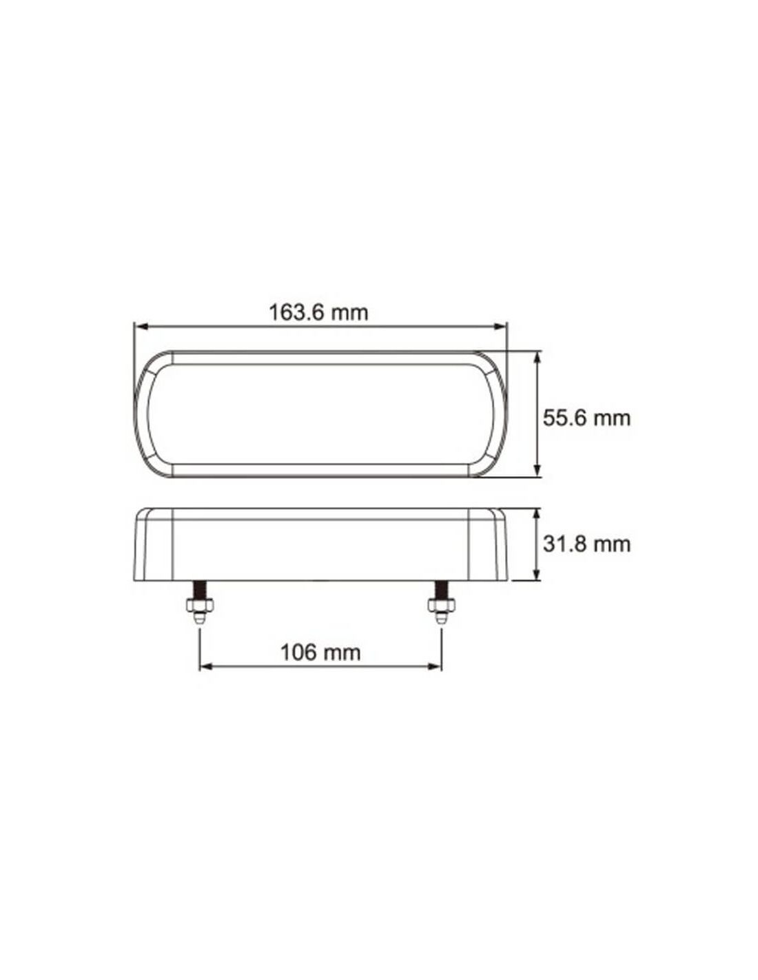 Feu arrière rectangulaire à LED valable pour les installations 12V et 24V avec 0,5 mètre de câble pour l'installation, parfait pour installer la partie supérieure des remorques ou pour les véhicules agricoles. Il n'a pas de protège-main, il peut être installé aussi bien du côté droit que du côté gauche, montage horizontal.