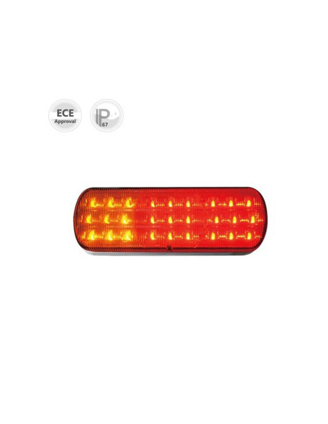 Feu arrière LED rectangulaire avec abat-jour transparent , comprend 0,5 mètre de câble pour l'installation et est complètement étanche. Ce modèle de feu arrière comprend 3 fonctions, position, frein et clignotant et sa hauteur est de 5,56 cm, sa profondeur de 3,18 cm et sa longueur totale de 13,36 cm.